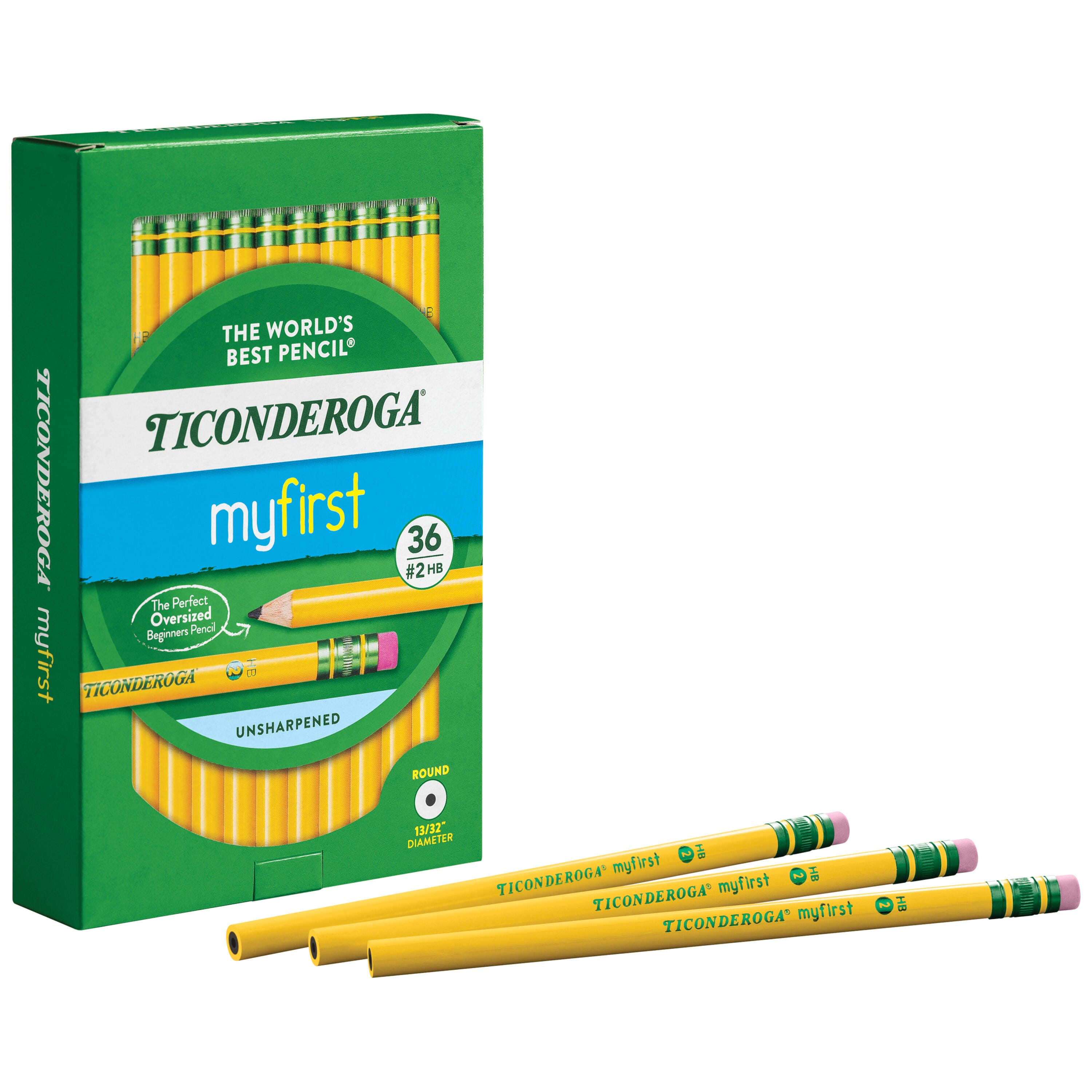 Ticonderoga My First Wood-Cased Pencils, No 2 HB, Unsharpened, Yellow, Pack of 36