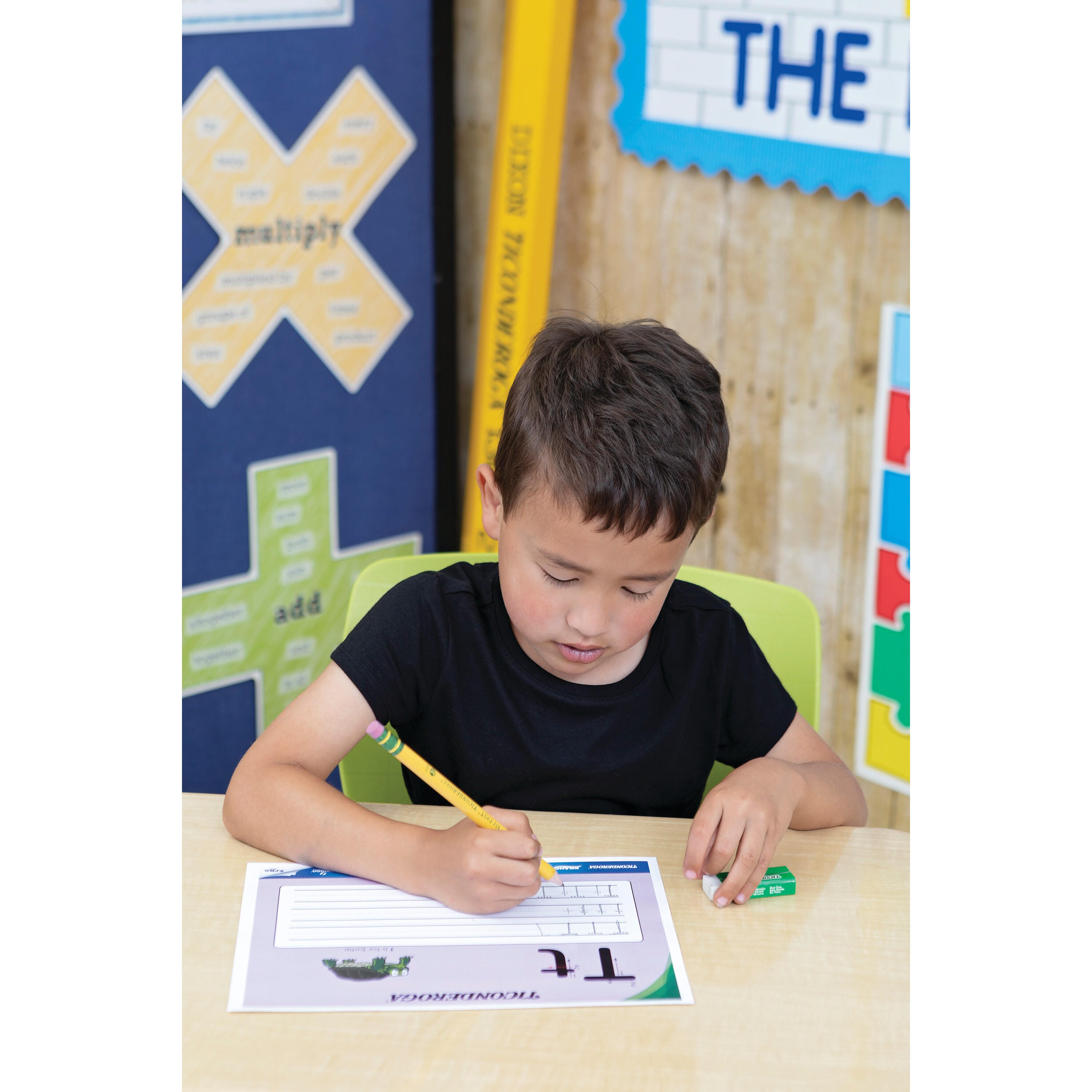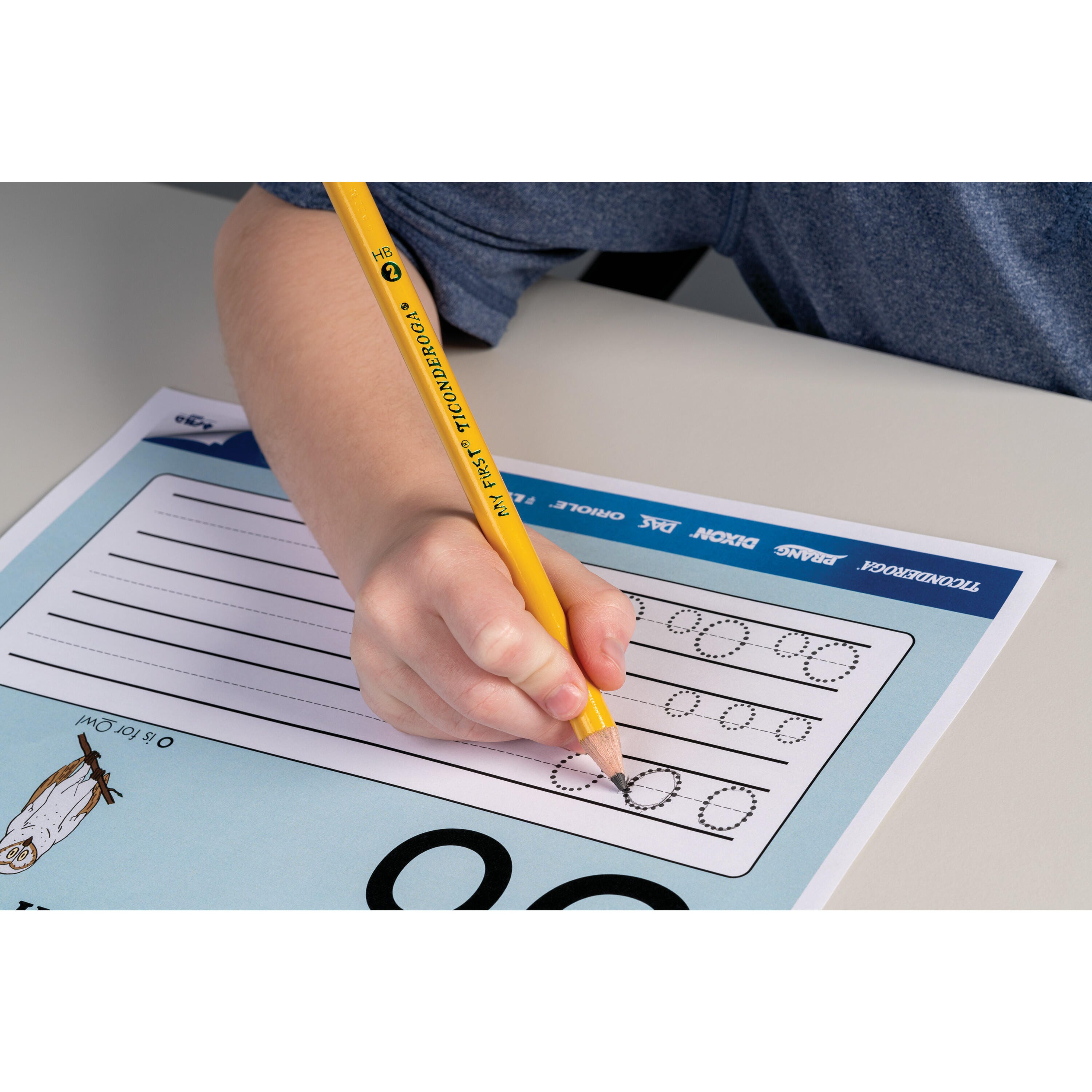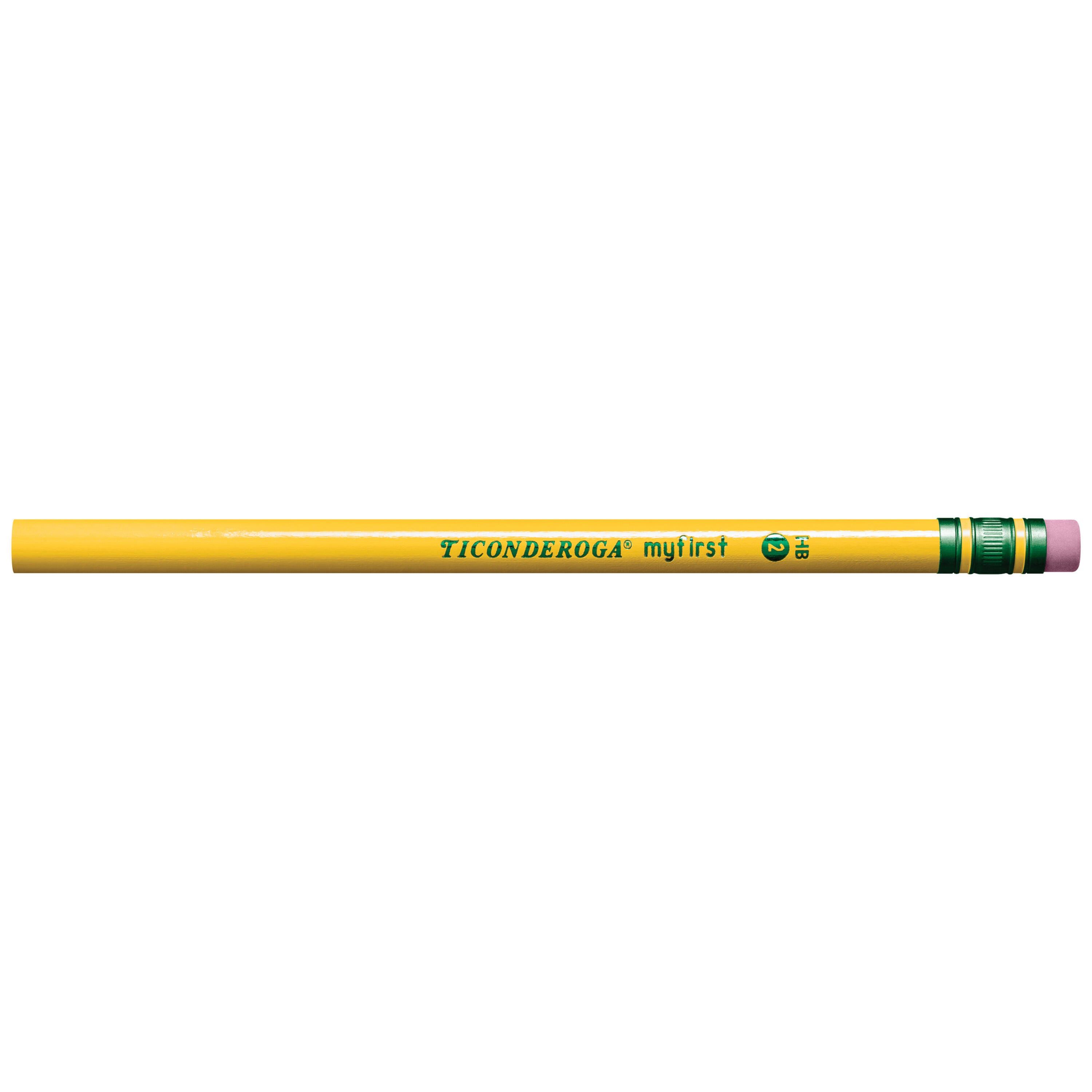 The My First Wood-Case pencils are designed with beginners in mind! This round No 2 pencil is ideal for children in the early stages of writing development, thanks to the large diameter (13/32 inch) that makes it easy for small hands to hold. The thick graphite core features a proprietary formula that delivers a broad, smooth line. The pencils are constructed using high-quality wood harvested from responsibly managed sources to provide smooth, even sharpening with minimal breakage. When only the best will do, teachers turn to Ticonderoga for its dependability and craftsmanship. Also available without the latex-free eraser (2090244).Features