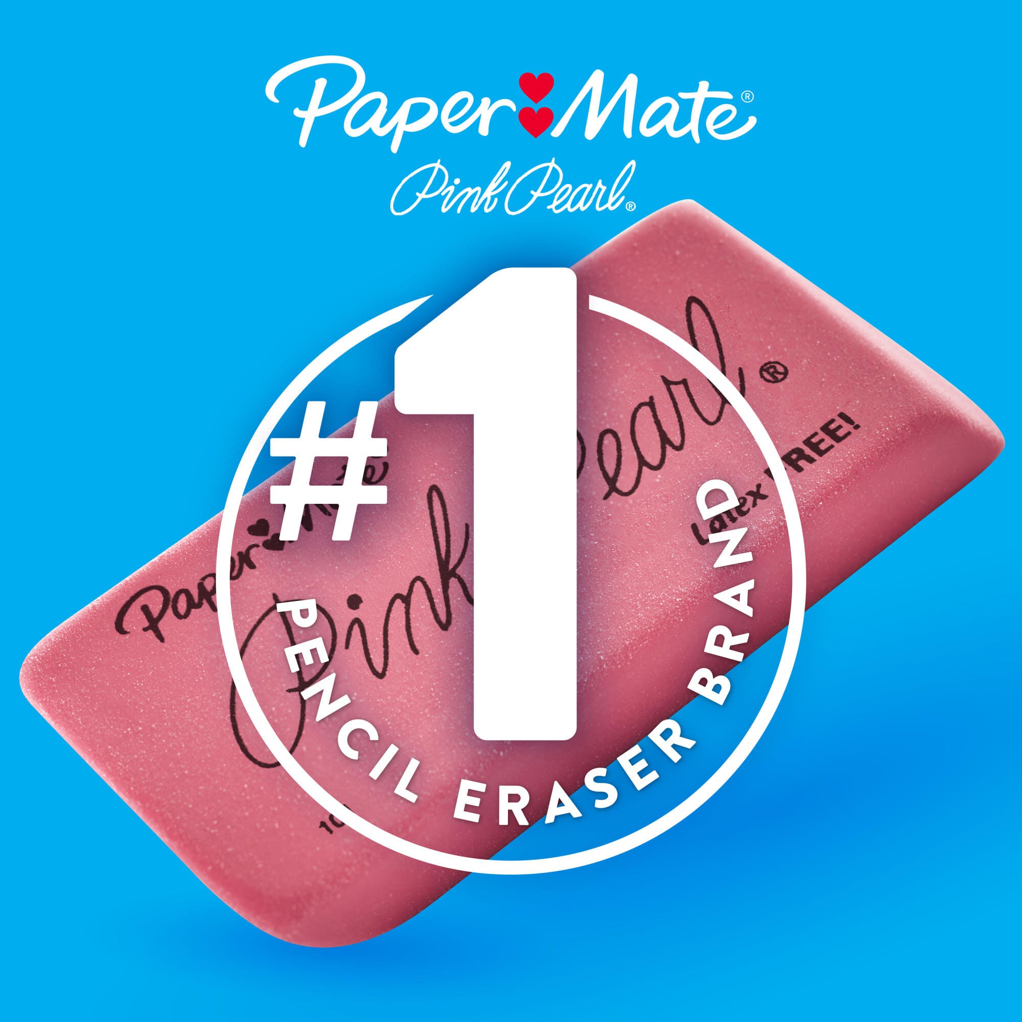 The Paper Mate Medium Pink Pearl Eraser is great for correcting pencil mistakes at school, home, or the office. This premium eraser is 100% latex-free, has beveled ends, and is soft and pliable for smudge-free erasing every time. This box contains 24 medium-sized erasers.
