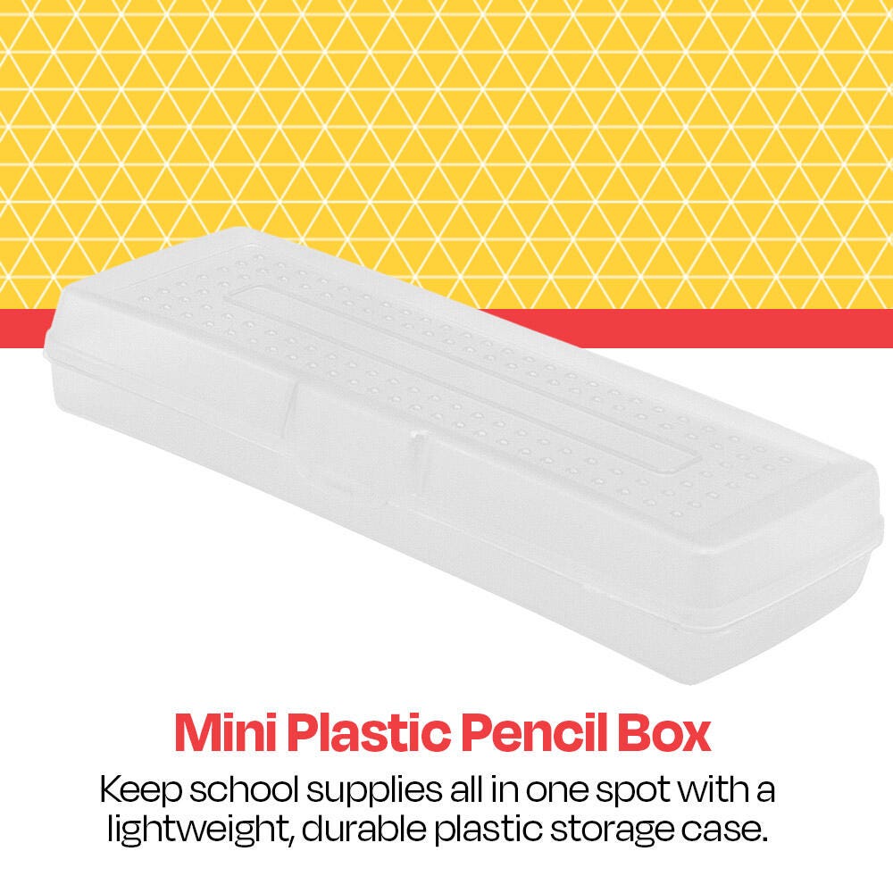 School Smart offers quality storage solutions for the classroom, office, or home. These Mini Lightweight Pencil Cases (each measuring 7-1/2 L x 3 W x 1-3/4 H inches) can fit in your desk, office drawer, purse, backpack, and more. They are made of a hard, clear plastic and hold standard-sized pens and pencils. This pencil case helps you improve organization at your desk or on the go.