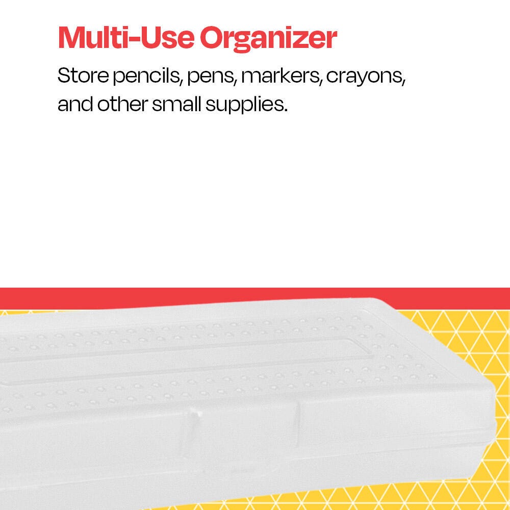 Solid one-piece pencil box provides convenient place to contain pencils, pens, crayons, and other writing utensils
