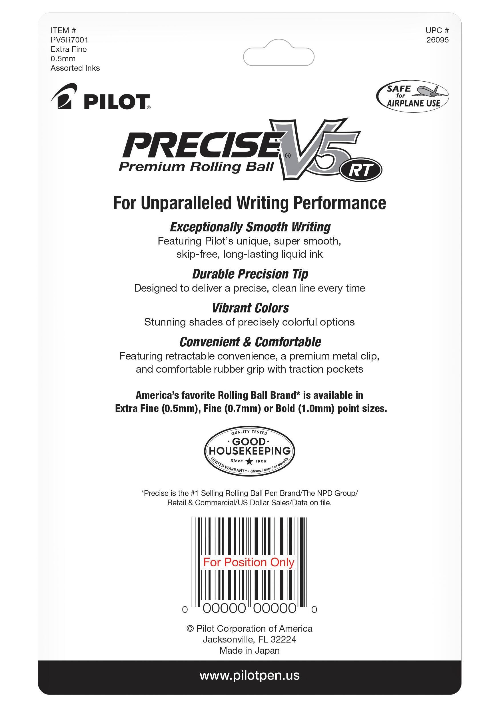 Pilot Precise V5 RT Premium Retractable Rolling Ball Pens, Extra Fine Point, Assorted Ink Colors, Set of 7