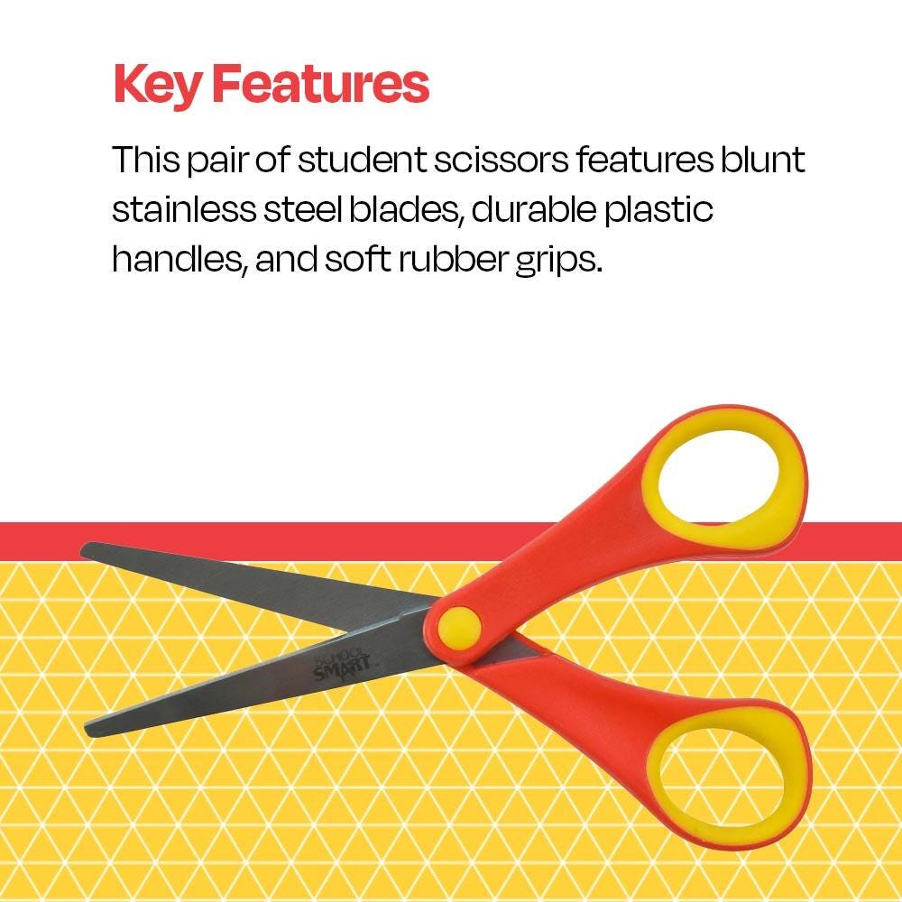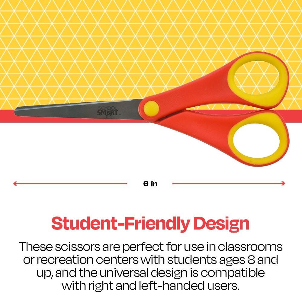 School Smart blunt tip scissors for ages 8+ have stainless steel blades with durable plastic handles. The blunt tips and comfortable plastic handles help kids cut and create during art class or fun time at home. Our blunt edge scissor measures 6 inches and comes at an affordable price for schools and recreation centers. These universal scissors can be used by righties and lefties.