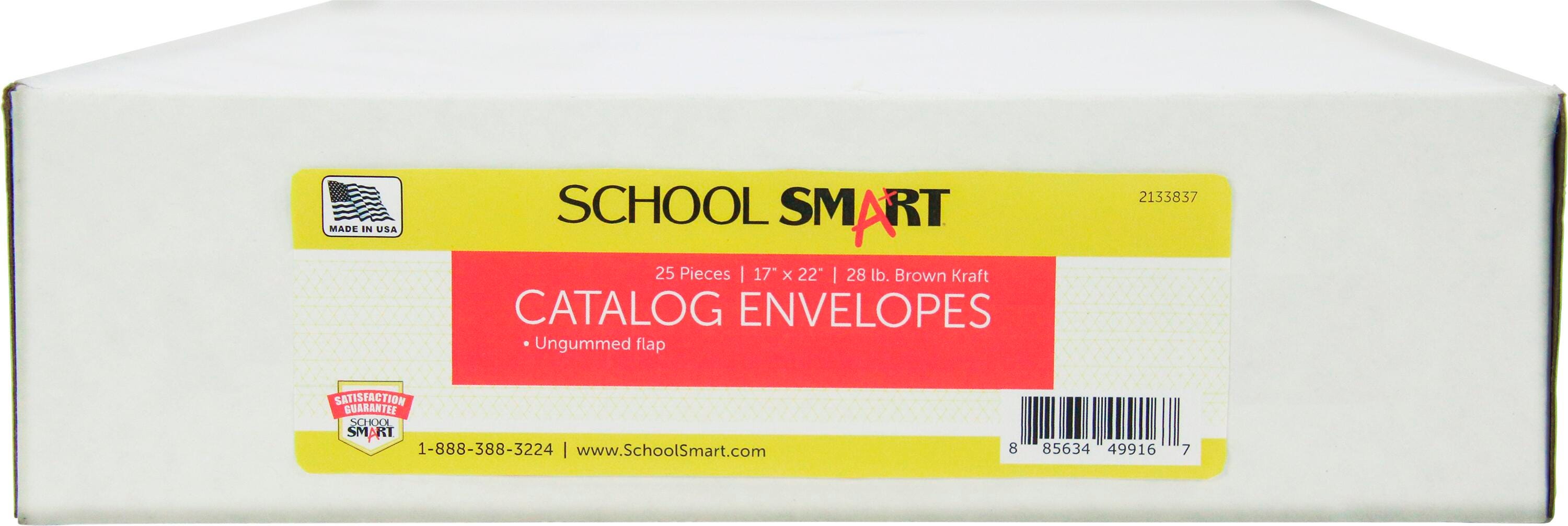 These Catalog Envelopes from School Smart deliver a handy storage or shipping option for documents, art projects, photos, and much more. These envelopes feature 2-1/2-inch ungummed flaps, reinforced seams, and open-end sealing. The 28 lb. Kraft paper offers reliable durability for storage, mailing, and transport. The 17 x 22-inch folders provide a versatile solution for documents or materials in different sizes. This pack contains 25 envelopes.