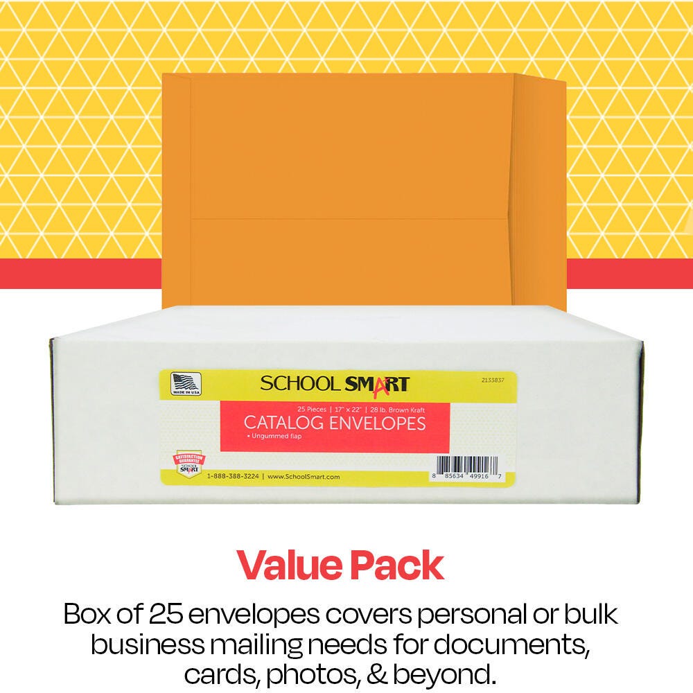 School Smart Catalog Envelopes, 17 x 22 Inches, Kraft, Box of 25