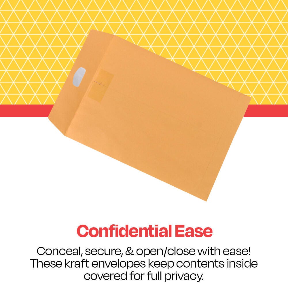 Look no further than the Multi Tak Clasp Envelopes from School Smart to keep your document mailing and storage quick and efficient! The resealable Multi Tak closure replaces the traditional metal clasp for repeated use and durability. Also featuring deep gumming on the flaps, these envelopes offer a secure seal. Whether keeping your desk organized, storing class assignments, or sending an important document, the blank space on these envelopes keeps the contents private while providing ample space for addresses or content notes. These brown kraft envelopes measure 10 x 13 inches and are sold as a pack of 100 envelopes.