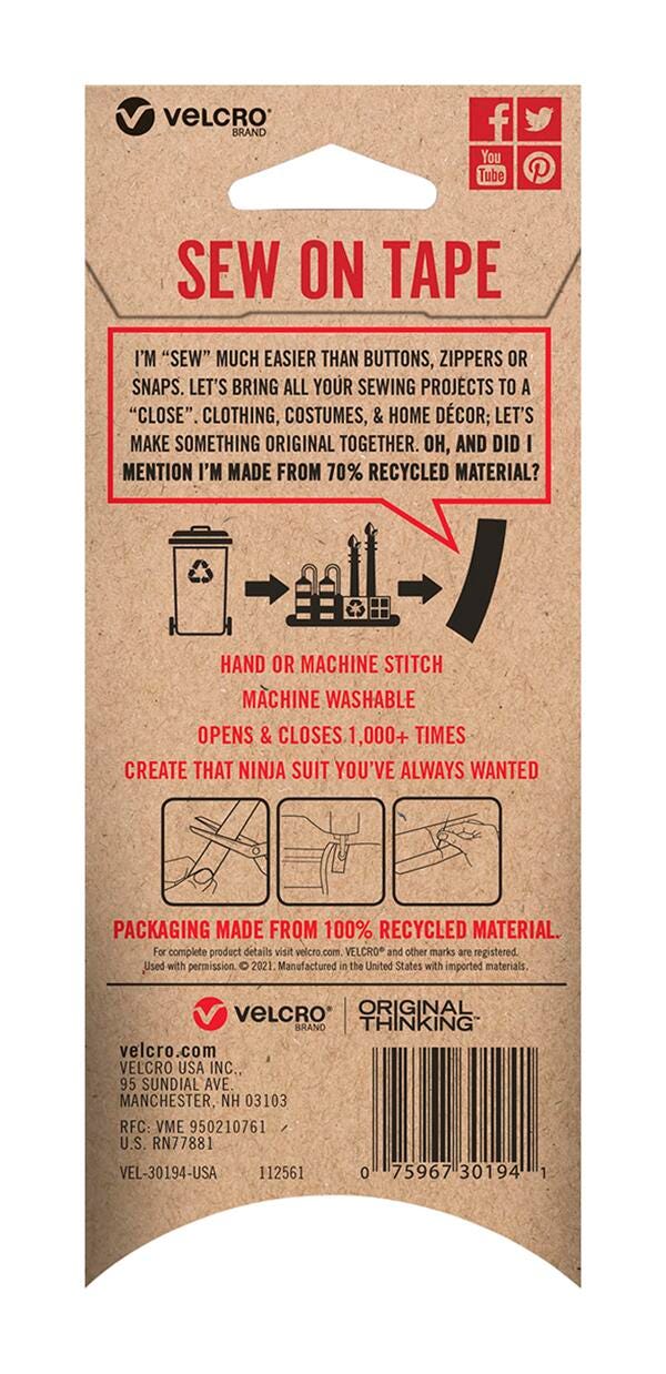 VELCRO Brand ECO Collection Sew On Tape, 3/4 Inch X 36 Inches, Black