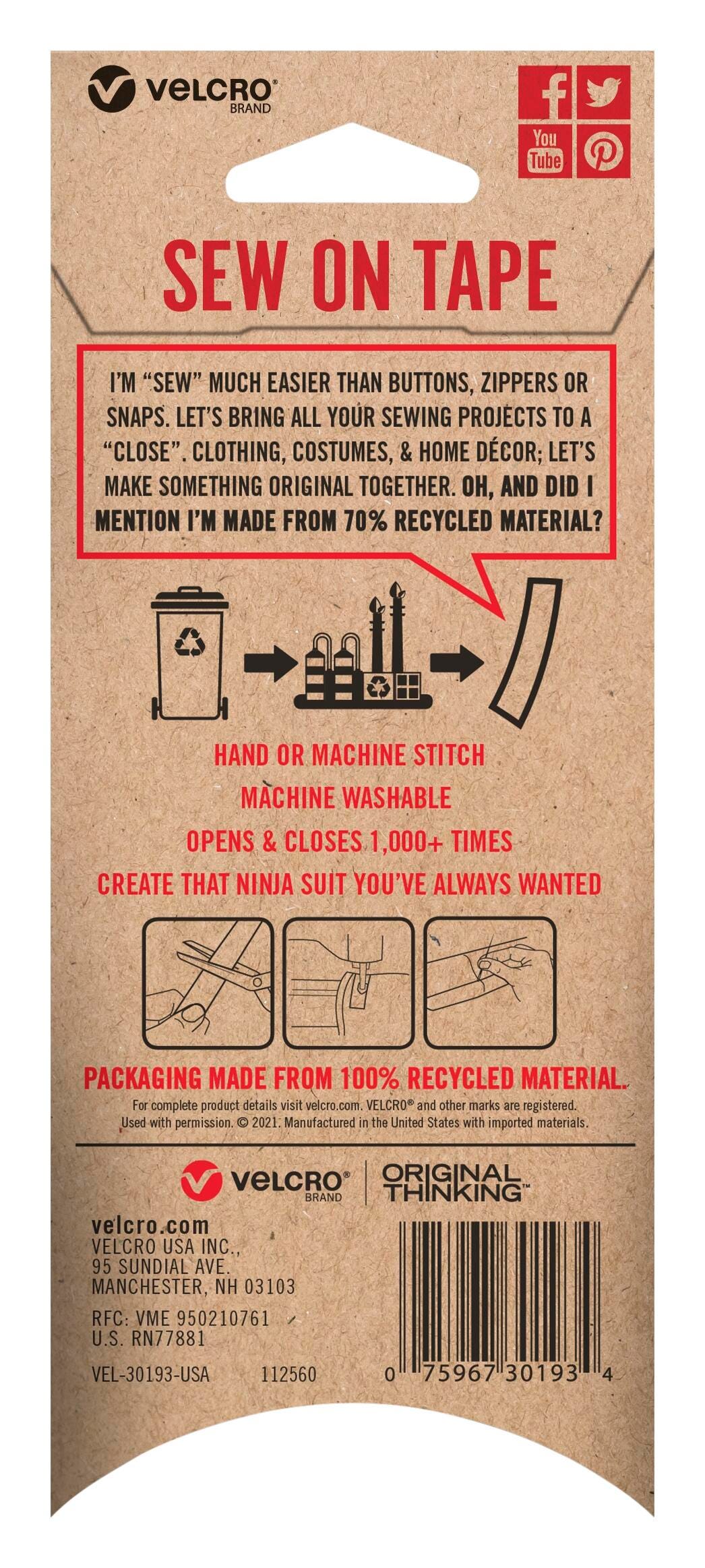 VELCRO Brand ECO Collection Sew On Tape, 3/4 Inch X 36 Inches, White