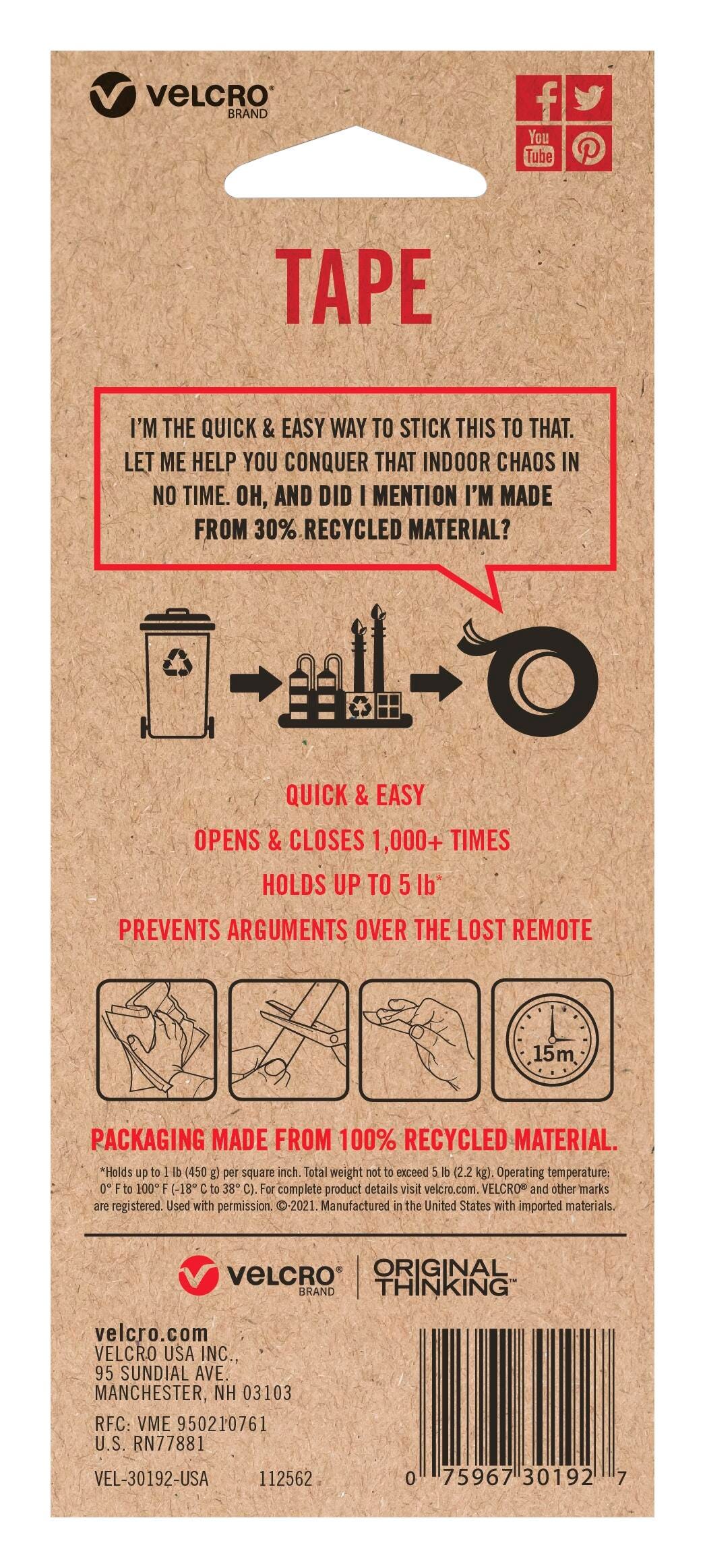 VELCRO Brand ECO Collection Stick on Adhesive Tape, 7/8 Inch X 3 Feet, White