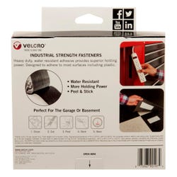 VELCRO Brand Hook and Loop industrial strength black fastener tape has 50 percent more holding power than standard general purpose sticky back fasteners. This water-resistant molded hook fastener is suitable for outdoor as well as indoor use. This heavy duty, water-resistant adhesive comes in a convenient dispenser box for large projects. The unused product stores easily in dispenser box and the tape can be cut to desired size. Measures 15 L feet x 2 W inches.Features
