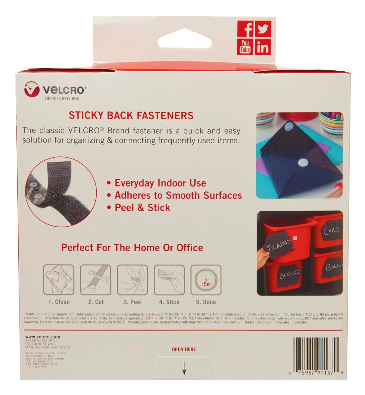 VELCRO Brand Hook and Loop sticky back black tape roll can be cut to desired size and is a great way of displaying pictures, posters, charts, maps, and much more. This hook and loop strip lets you firmly hang or hold items in place. Black roll of tape measures 30 L feet x 3/4 W inches.Features