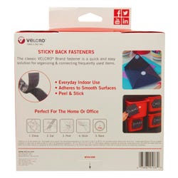 VELCRO Brand Hook and Loop sticky back black tape roll can be cut to desired size and is a great way of displaying pictures, posters, charts, maps, and much more. This hook and loop strip lets you firmly hang or hold items in place. Black roll of tape measures 30 L feet x 3/4 W inches.