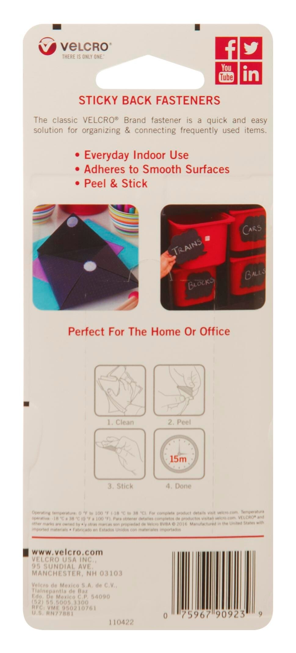 Numerous applications to keep the classroom tidy - fasten items to desks and folders, stick nametags to back the back of chairs. Adhere your whiteboard erasers and markers to the board with our sticky back tape. Simple to use pre-cut Coins, just clean surface, peel off the protective backing and firmly press against the surface; allow adhesive bond to set for 24 hours to achieve full strengthFeatures