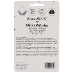 StikkiWorks Stikki Wax Reusable Adhesive is suitable for 3-dimensional items, quick repairs, posters, securing small items, art and science projects. Waterproof, odorless, colorless, non-toxic. Use on wallboard, cinder block, brick, plaster, paneling, pegboard, concrete, metal, glass, plastic, wallpaper, tile and almost anything else.Features