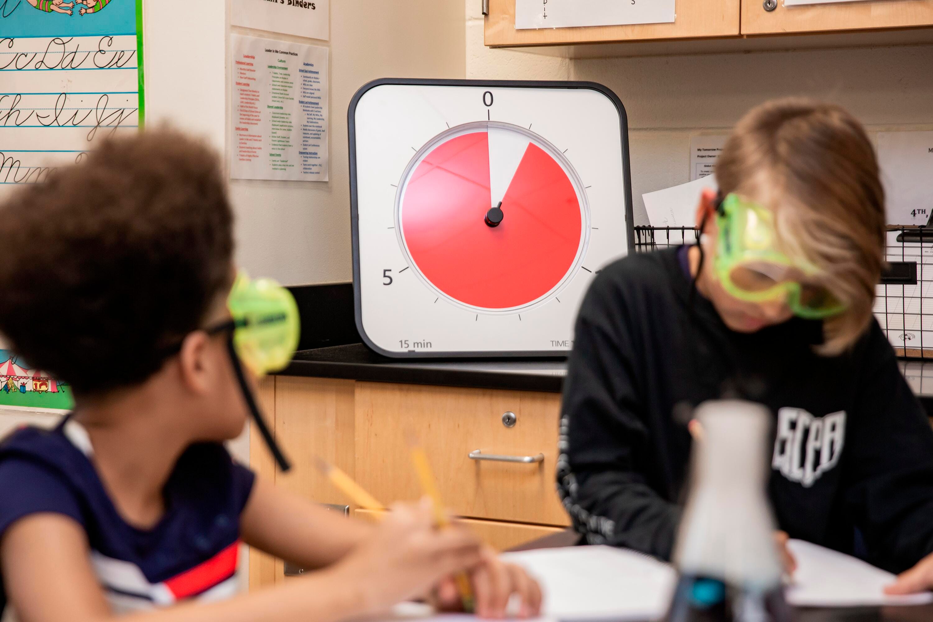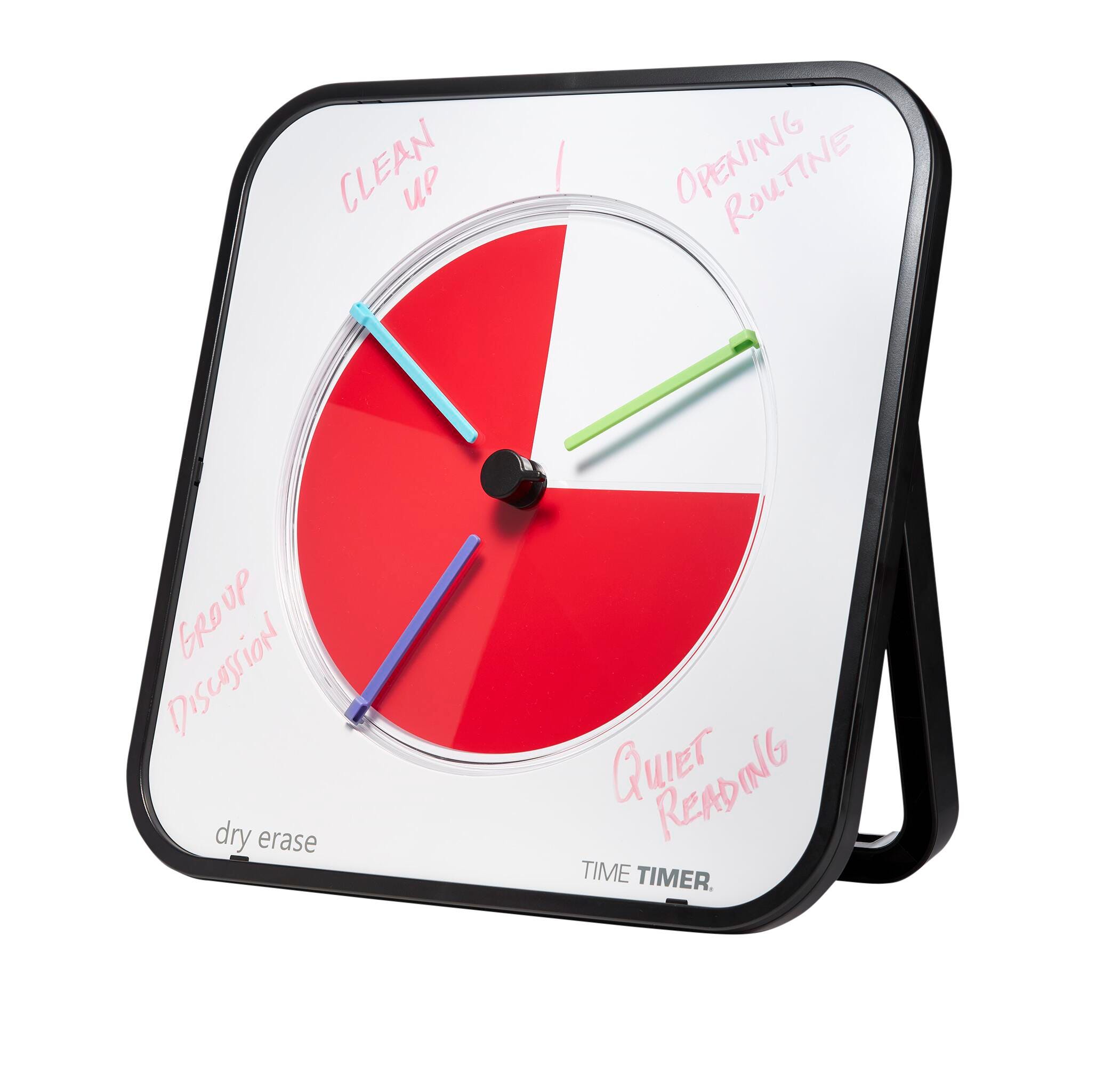 The Time Timer MAX is 17 inches by 17 inches so it can be seen in larger spaces such as gymnasiums, cafeterias, auditoriums, and large meeting rooms. It’s also eight timers in one – with customizable durations and changeable timer faces, the MAX can countdown as low as 5 minutes, or as high as 24 hours. Included with the MAX are 3 two-sided timer faces – 5/15 minutes, 30/60 minutes, 120 minutes/Dry Erase Board timer face allowing for maximum flexibility and customization, in addition to “set markers.” The three colored set markers can create time blocks on any face by snapping them into the grooves between the red disk and numbers. The MAX can be used on a flat surface, hung on a wall, whiteboard, or map rail. 1 bracket mount is included. Requires two C batteries (not included).An ideal resource for use during National Literacy Month in September.