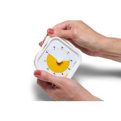 This duration is ideal for quickly timed activities like fine motor skill development, sensory activities, and self-regulation. The entire yellow disk represents 10 minutes and can be set at any duration up to 10 minutes. REMOVABLE SILICONE CASE INCLUDED — Protected by a soft white removable silicone case that can help guard it from the bumps and falls that are part of everyday life in the classroom. Additional case color options are available (sold separately). Requires 1 AA battery.Features