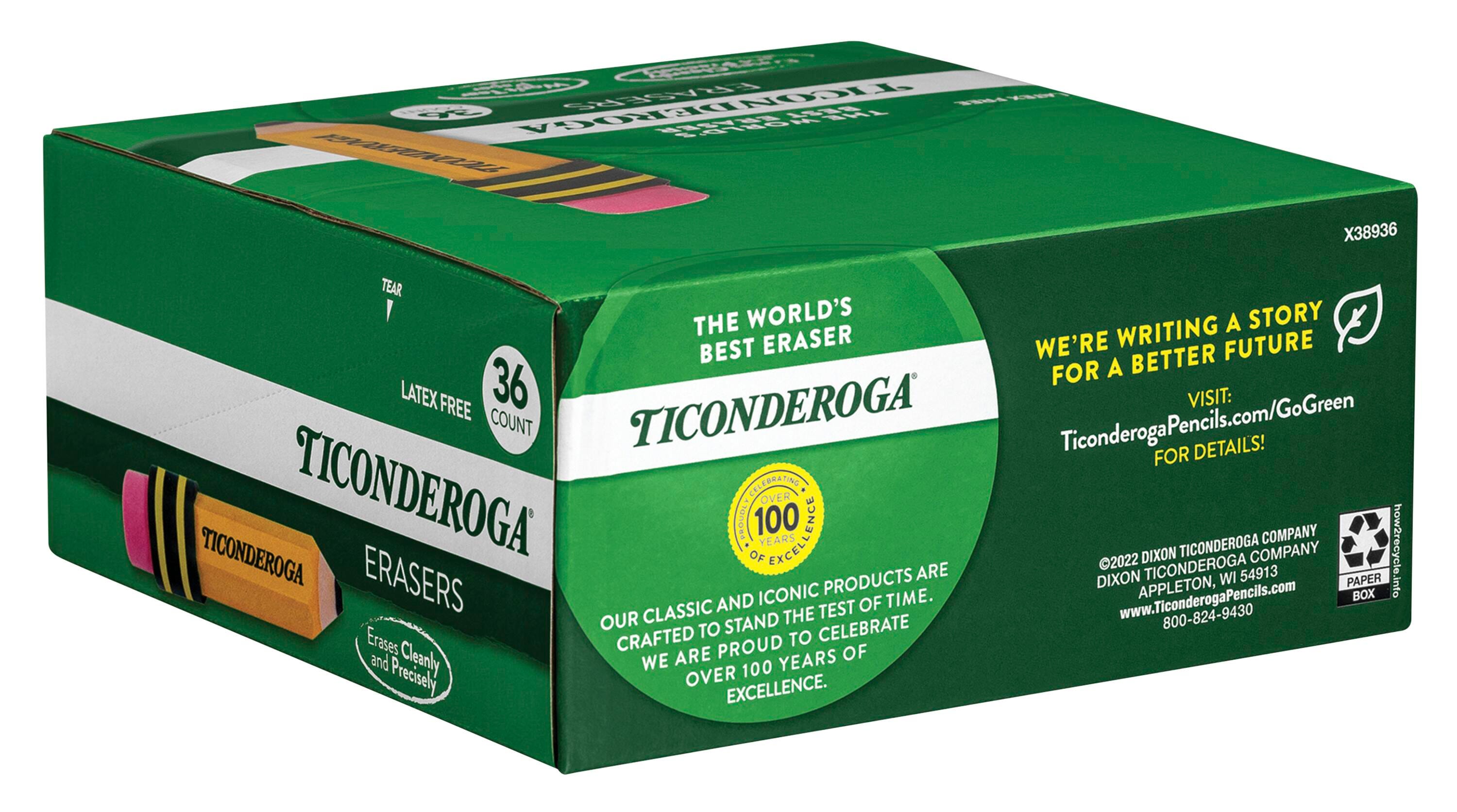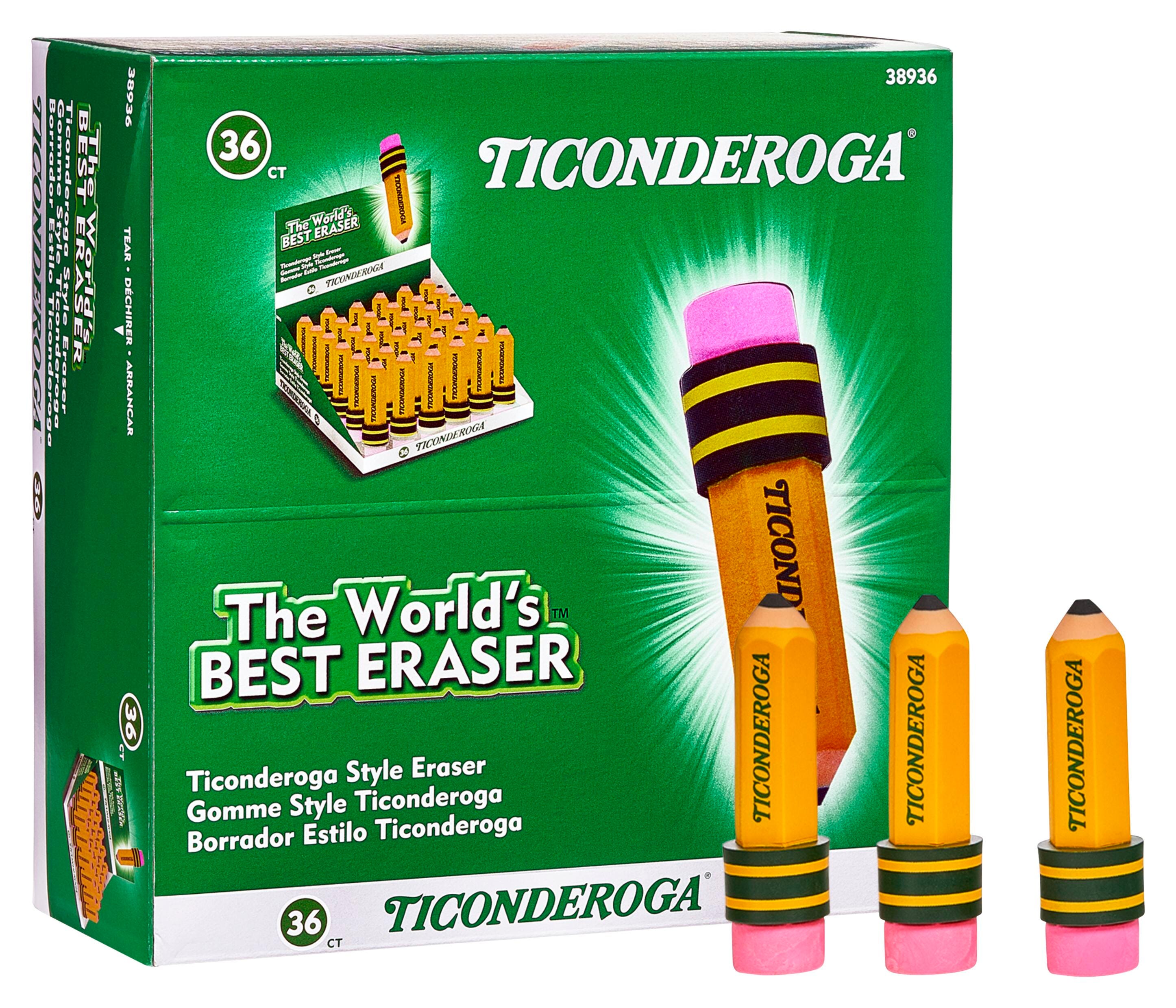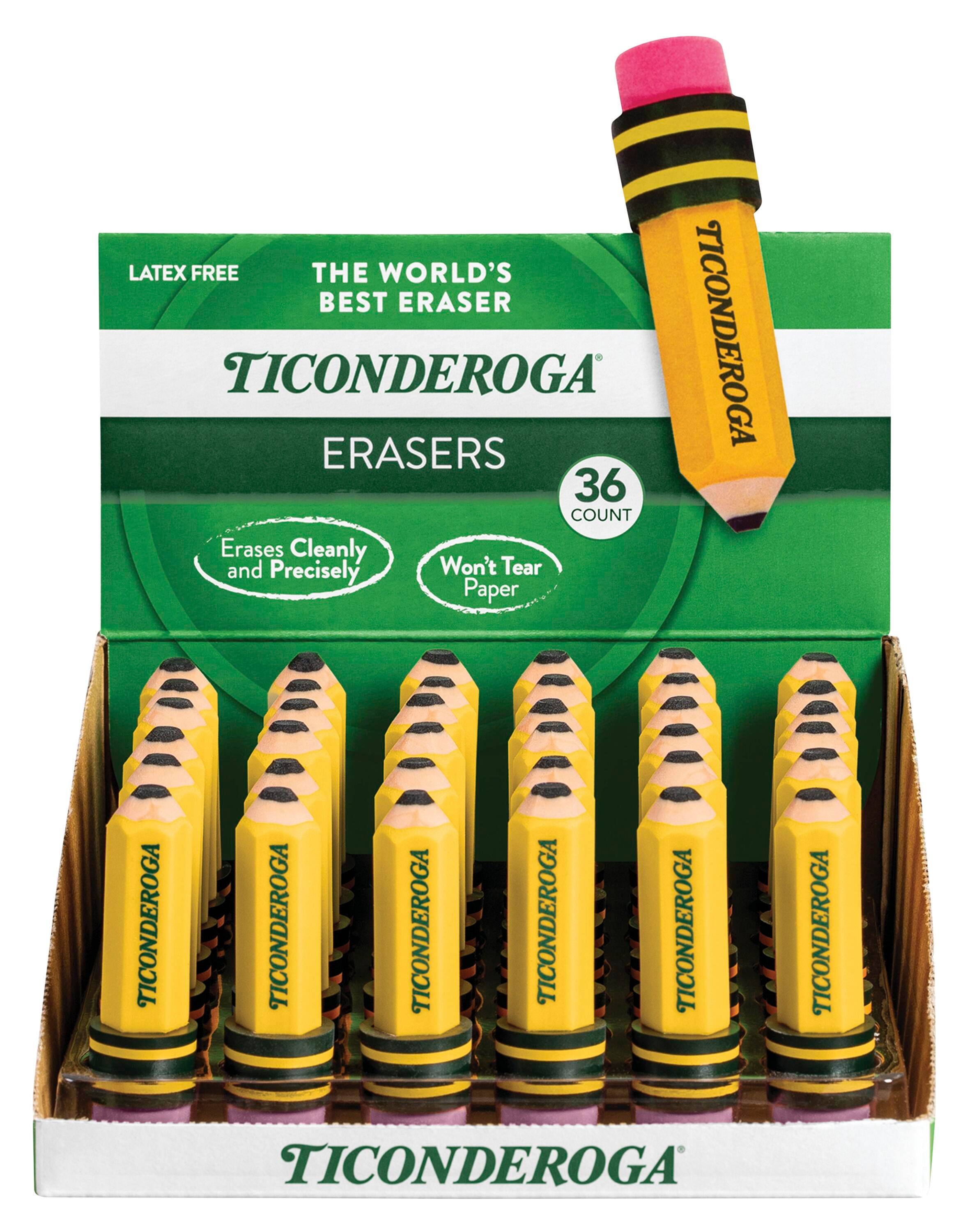 Ticonderoga Pencil-Shaped Erasers, Yellow, Pack of 36