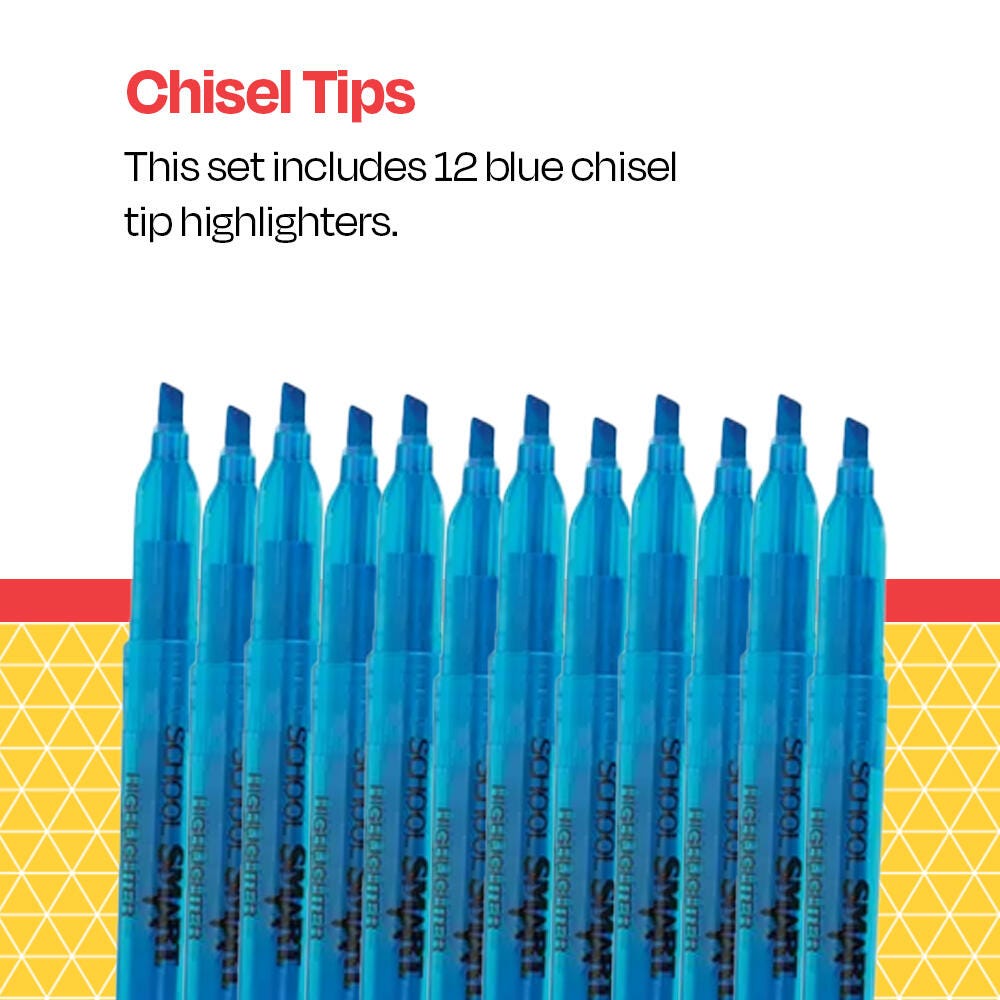 School Smart Pen Style Highlighters, Chisel Tip, Blue, Pack of 12