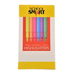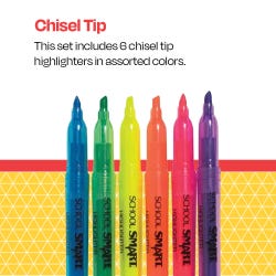 School Smart Pen Style Highlighters, Chisel Tip, Assorted Colors, Pack of 6