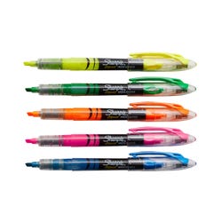 No highlighter shines as bright as the Sharpie Accent Highlighter. Each highlighter features the most vibrant ink Sharpie has to offer and a conveniently clear barrel, so you know exactly how much ink is left. With transparent, quick-drying ink in brilliant colors and an easy-gliding narrow chisel tip that highlights and underlines your most important thoughts and notes are sure to jump off the page. This set of 5 includes the following assortment of fluorescent colors: blue, green, orange, pink, and yellow.Features