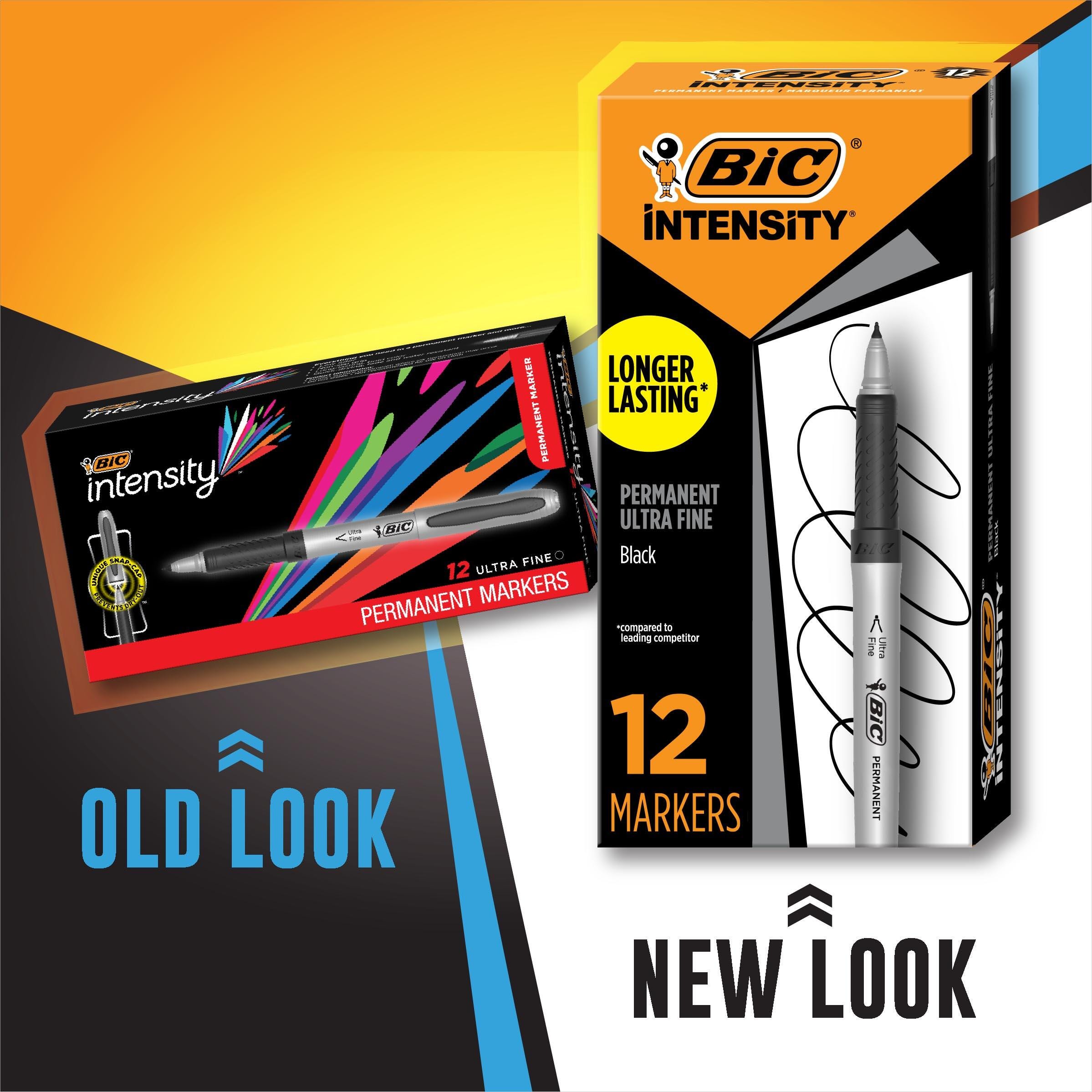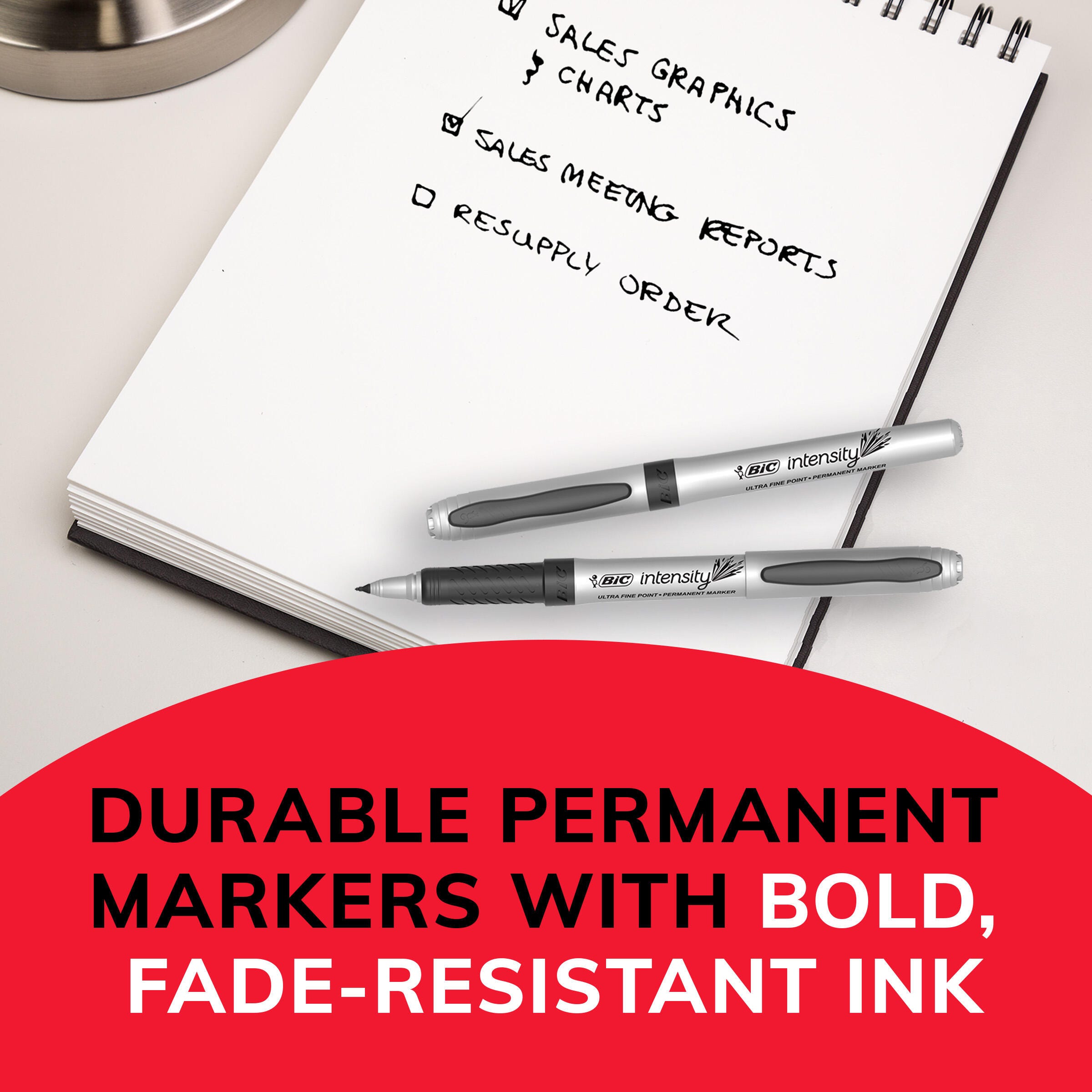 BIC Intensity Permanent Markers, Ultra Fine Tip, Black, Pack of 12