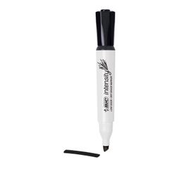 Bring your ideas to life in bold, consistent lines with this pack of BIC Intensity Low Odor Dry Erase Markers. They have a low-odor, non-toxic ink formula that provides smooth ink flow on non-porous surfaces. The dry-erase ink quickly wipes away with a dry cloth, tissue, or felt eraser for easy cleaning. With a large tank-style barrel, these non-toxic markers are easy to grip and offer a long-lasting ink supply that's perfect for schools and offices. This pack contains 12 black dry-erase markers.Features