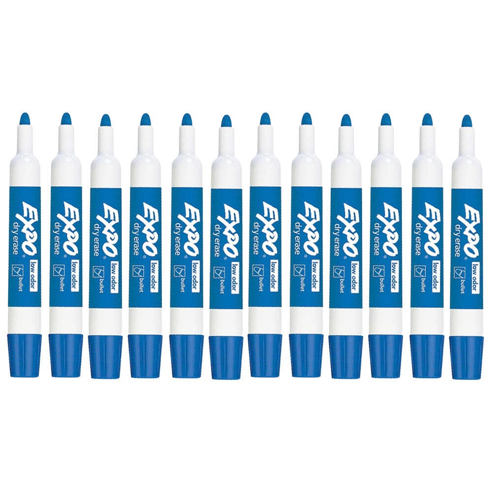 EXPO Low Odor Dry Erase Markers, Bullet Tip, Blue, Pack of 12
