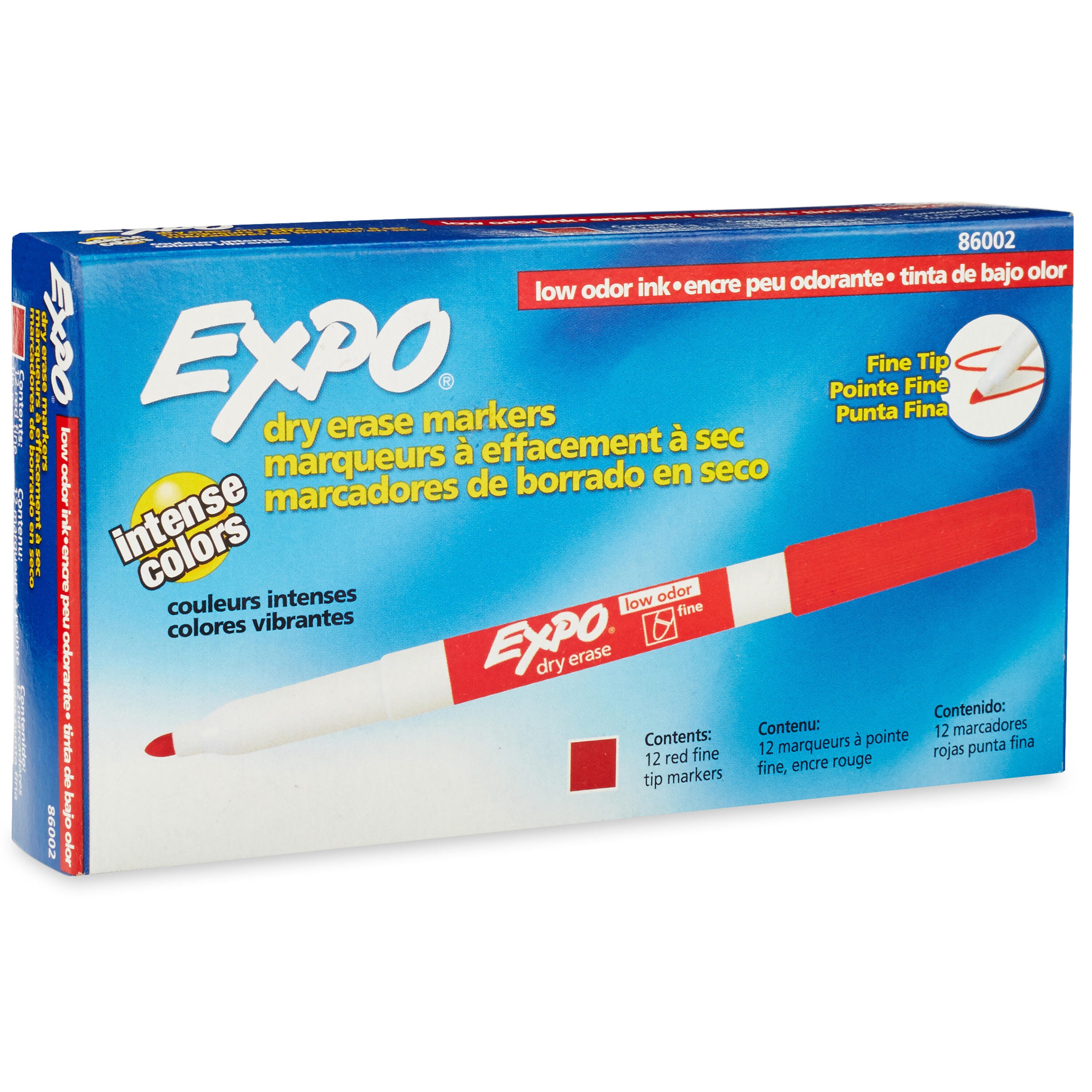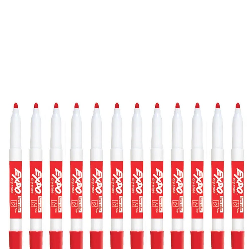 EXPO Low Odor Dry Erase Markers, Fine Tip, Red, Pack of 12