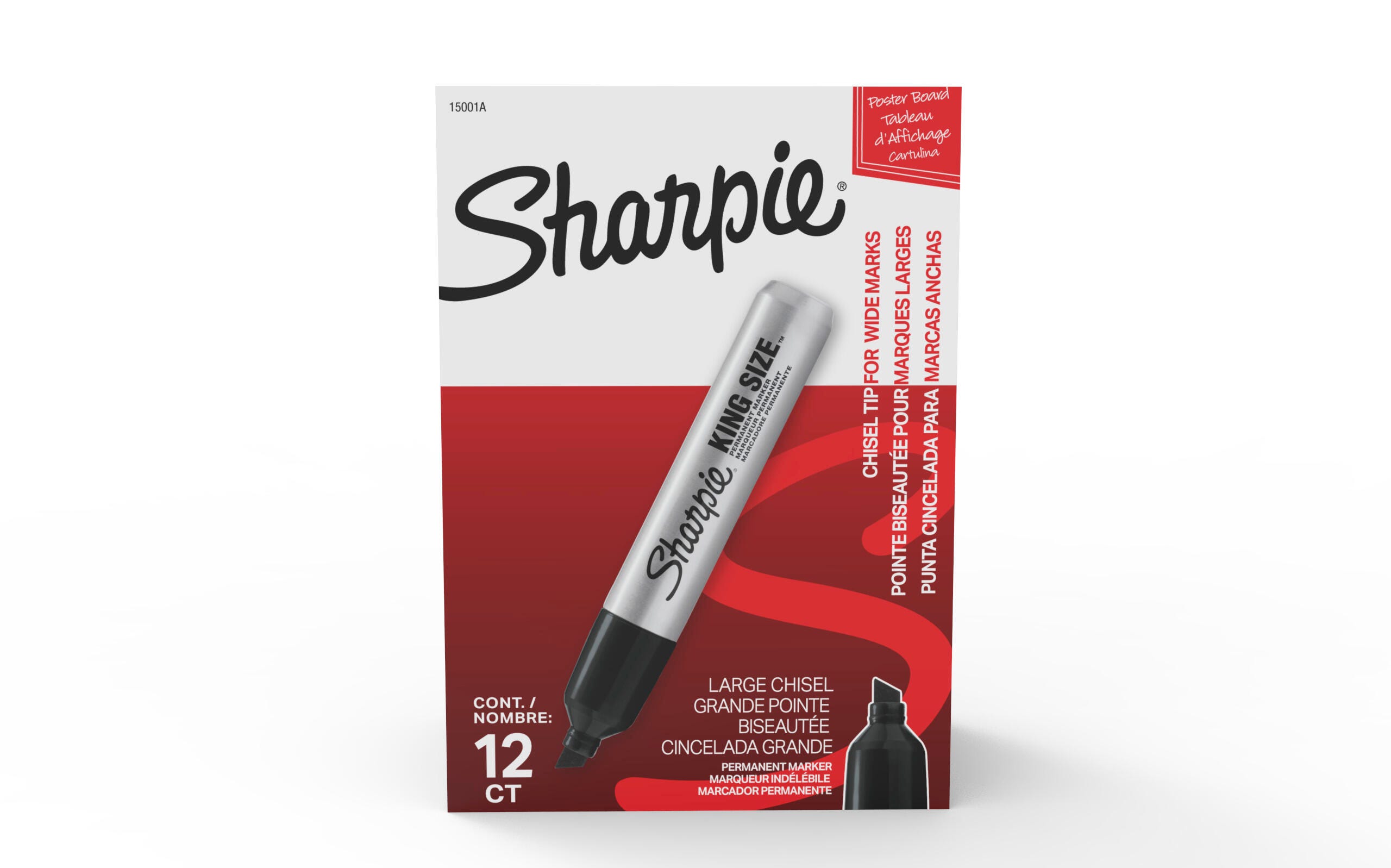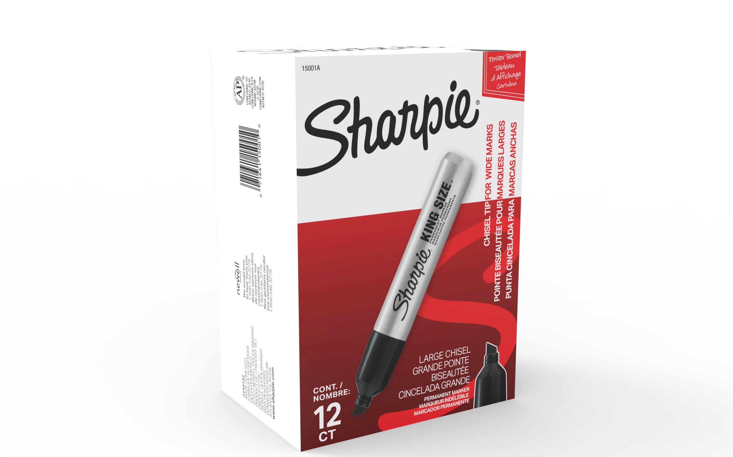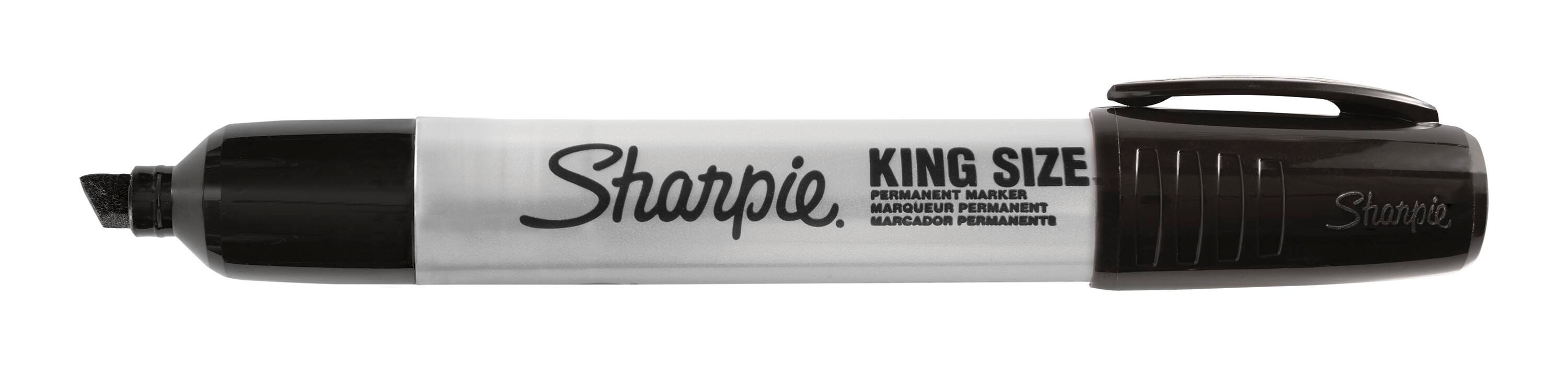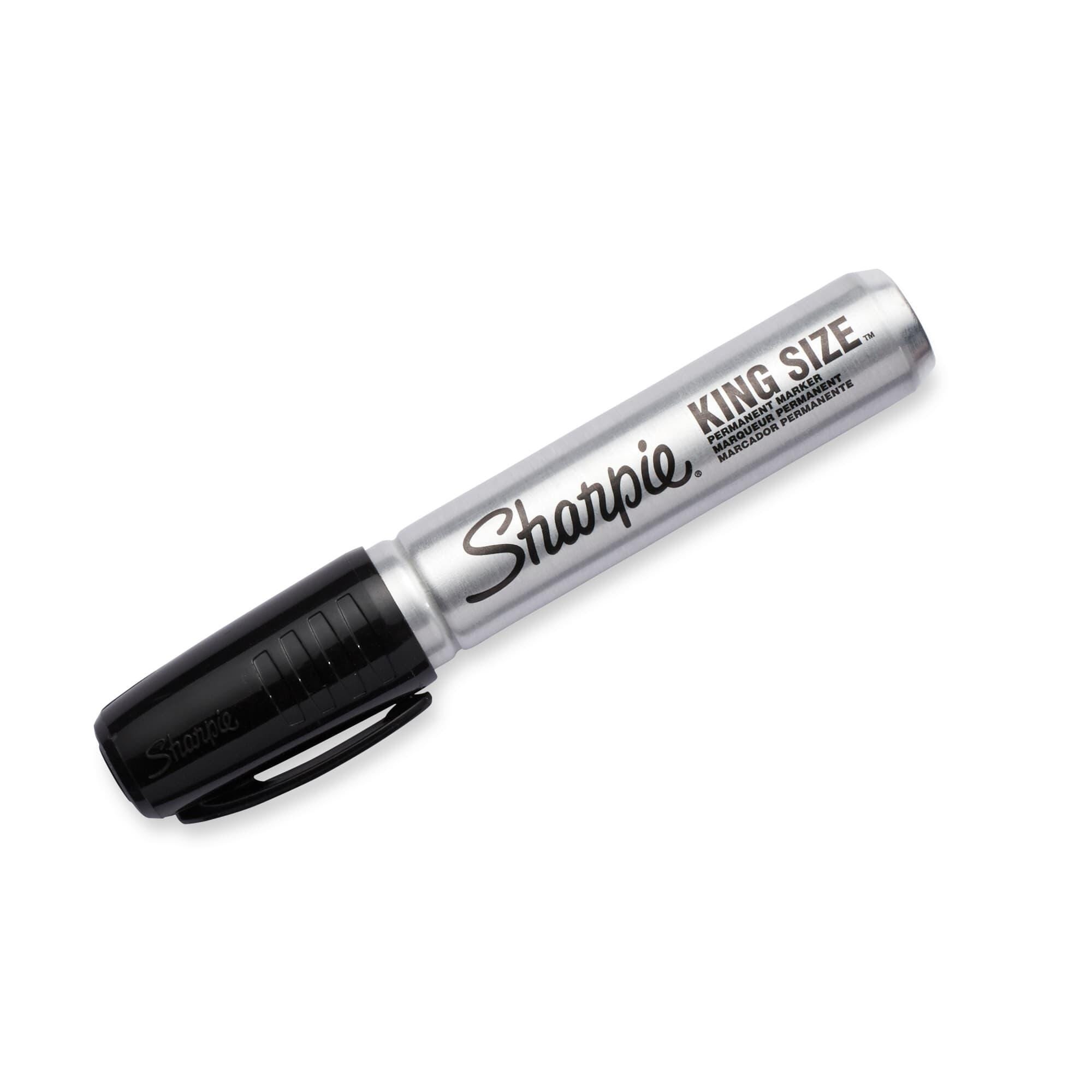 The Sharpie King Size Permanent Marker is rugged for long-lasting durability. Specially made for industrial users, these bold markers write on greasy, wet, and oily surfaces while the extra durable barrel withstands heavy use. These large markers create clear lines on plastic, wood, stone, foil, metal, corrugate, leather, and more. The iconic ink is quick-drying, water-resistant, and fade-resistant.