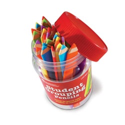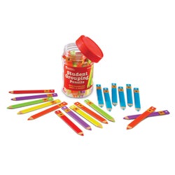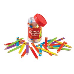 Learning Resources Student Grouping Pencils allows you to group students by the color, number, or shape on their pencils. Handy tool simplifies management of cooperative learning groups and helps ensure that you call on every student to participate. Each pencil features enough space to write a student's name. Packaged in a convenient storage jar. Plastic pencils measure 4-1/2 L x 1/2 H inches each. Ages 3 and up.Features