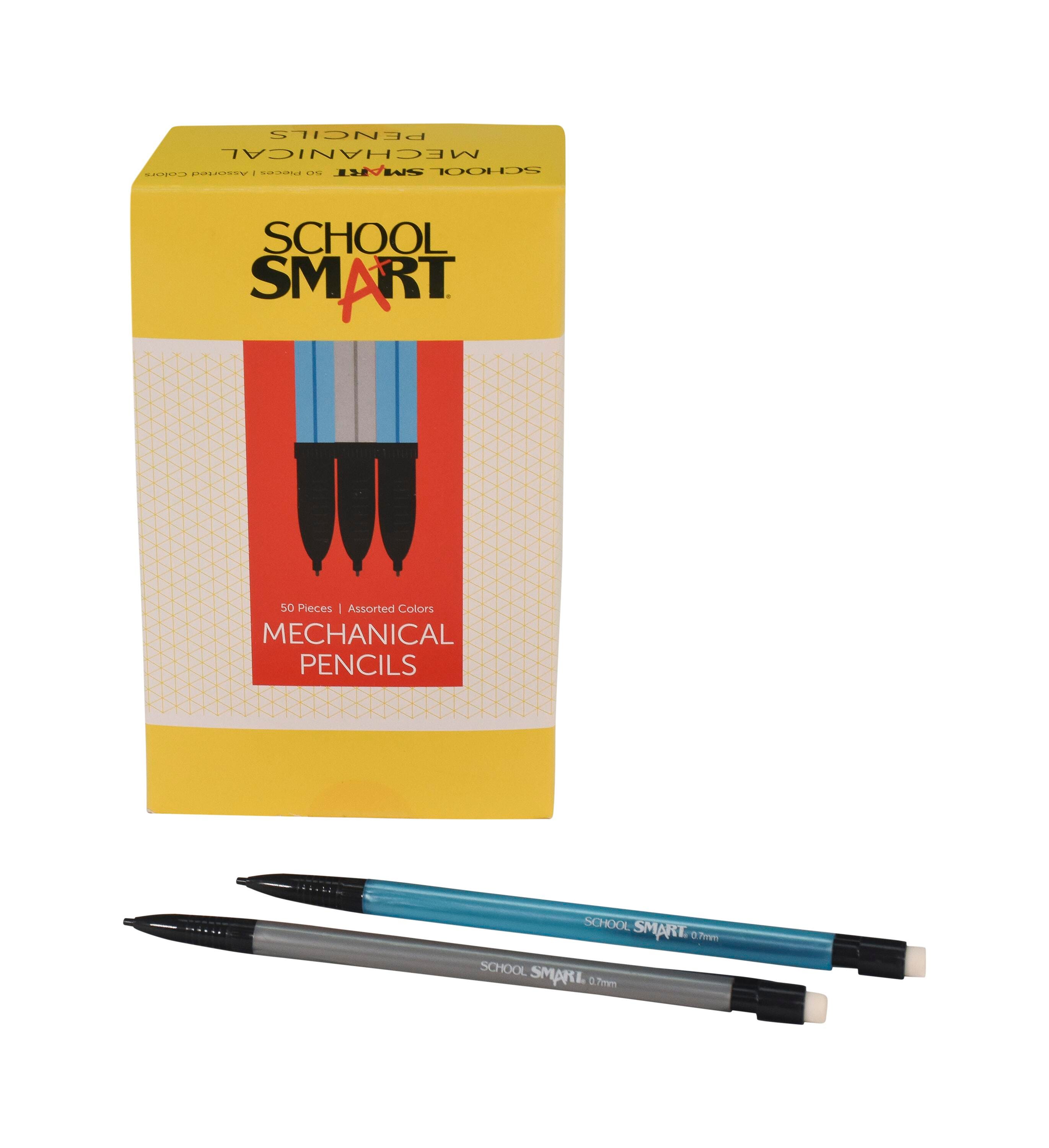 School Smart Mechanical Pencils with Eraser, 0.7 mm Tip, No 2 Lead, Assorted Colors, Pack of 50