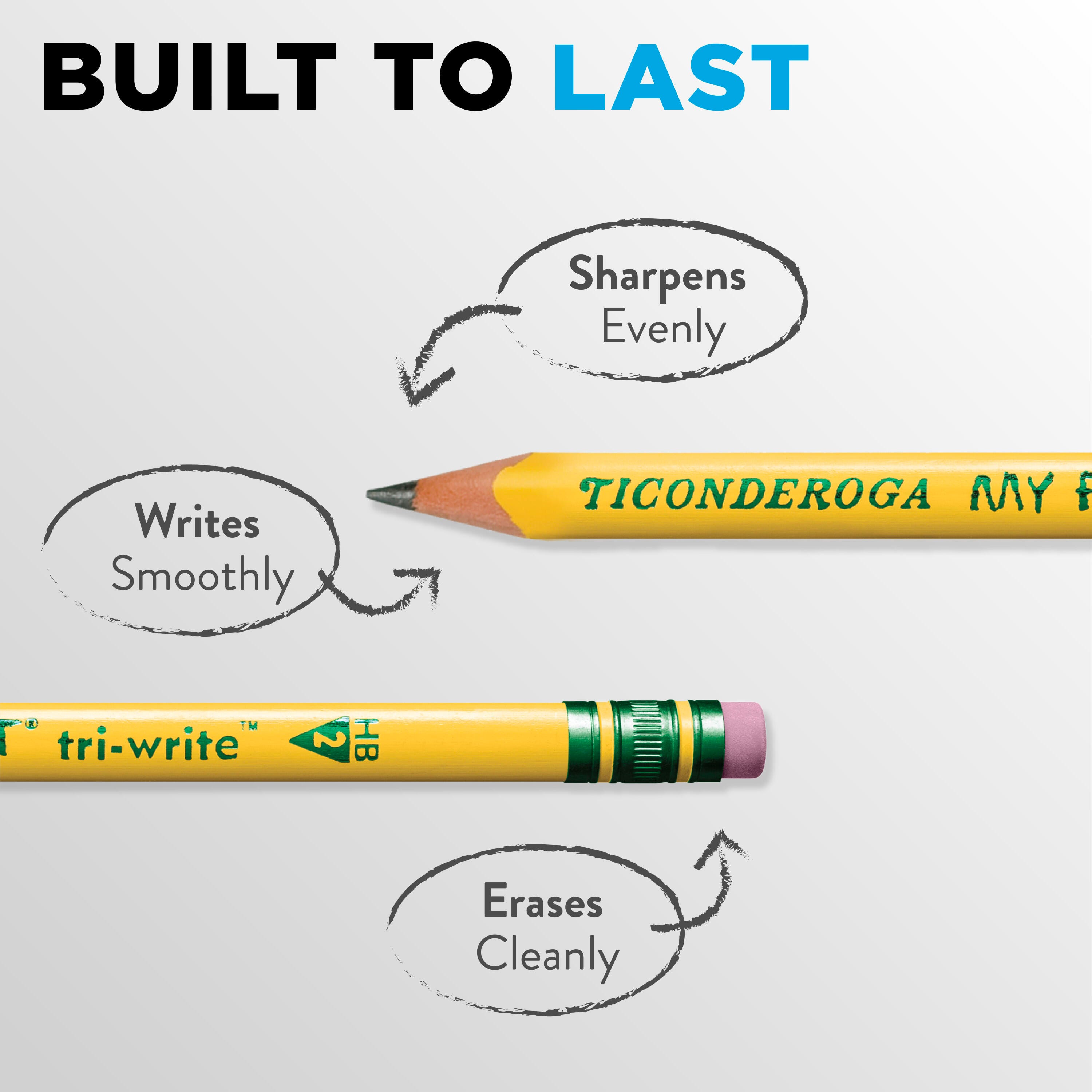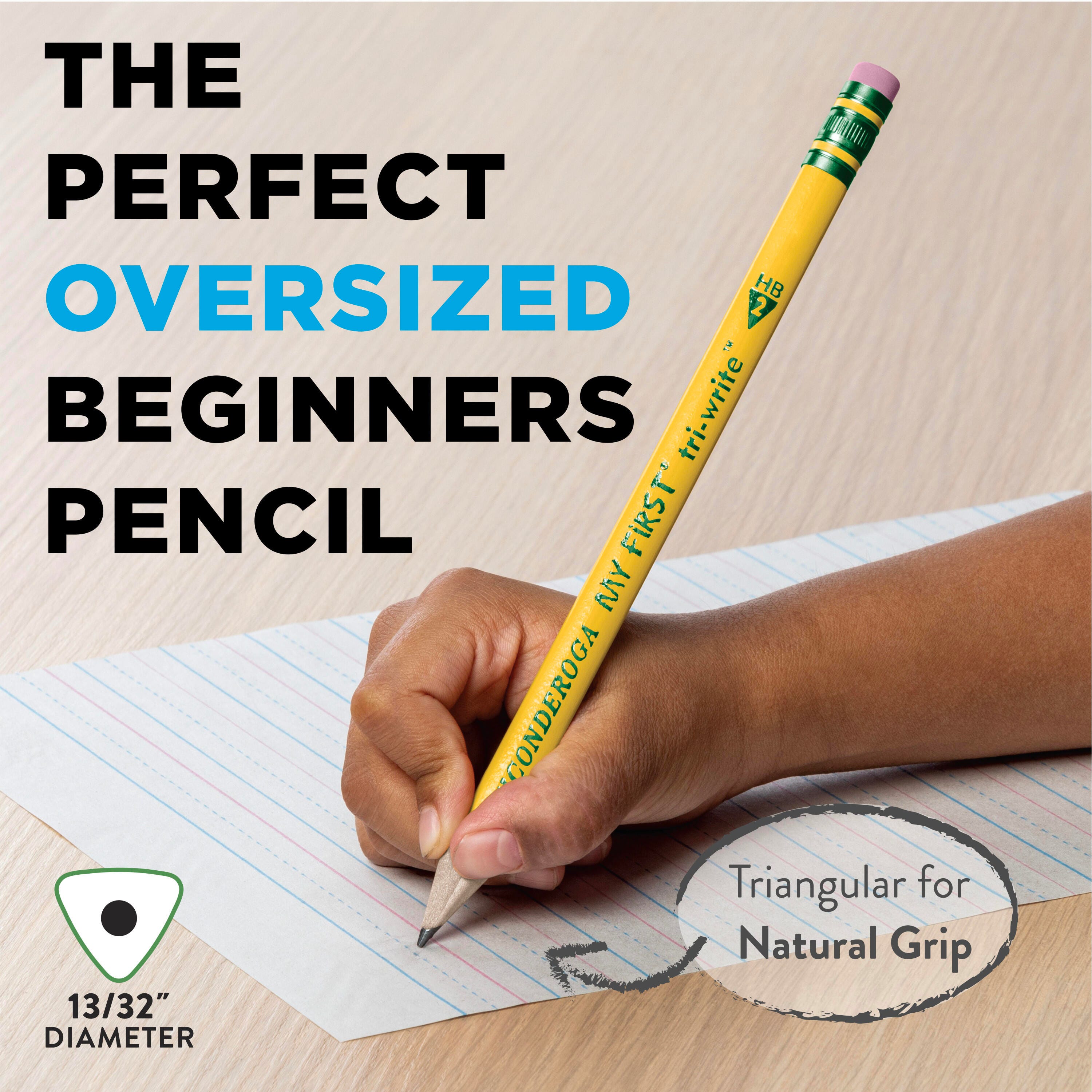 Foster an early love for writing with comfort and performance! The My First Tri-Write Pencils from Ticonderoga are an excellent choice to aid children in the early stages of their writing development. The large 13/32 inch diameter makes them easy for small hands to hold, while the triangular shape promotes the correct 3-finger grip. These pencils are designed with high-quality materials, including premium wood casings, a soft, thick No 2 graphite core, and latex-free erasers. All Ticonderoga pencils are PMA-certified non-toxic, so you can use them with confidence.