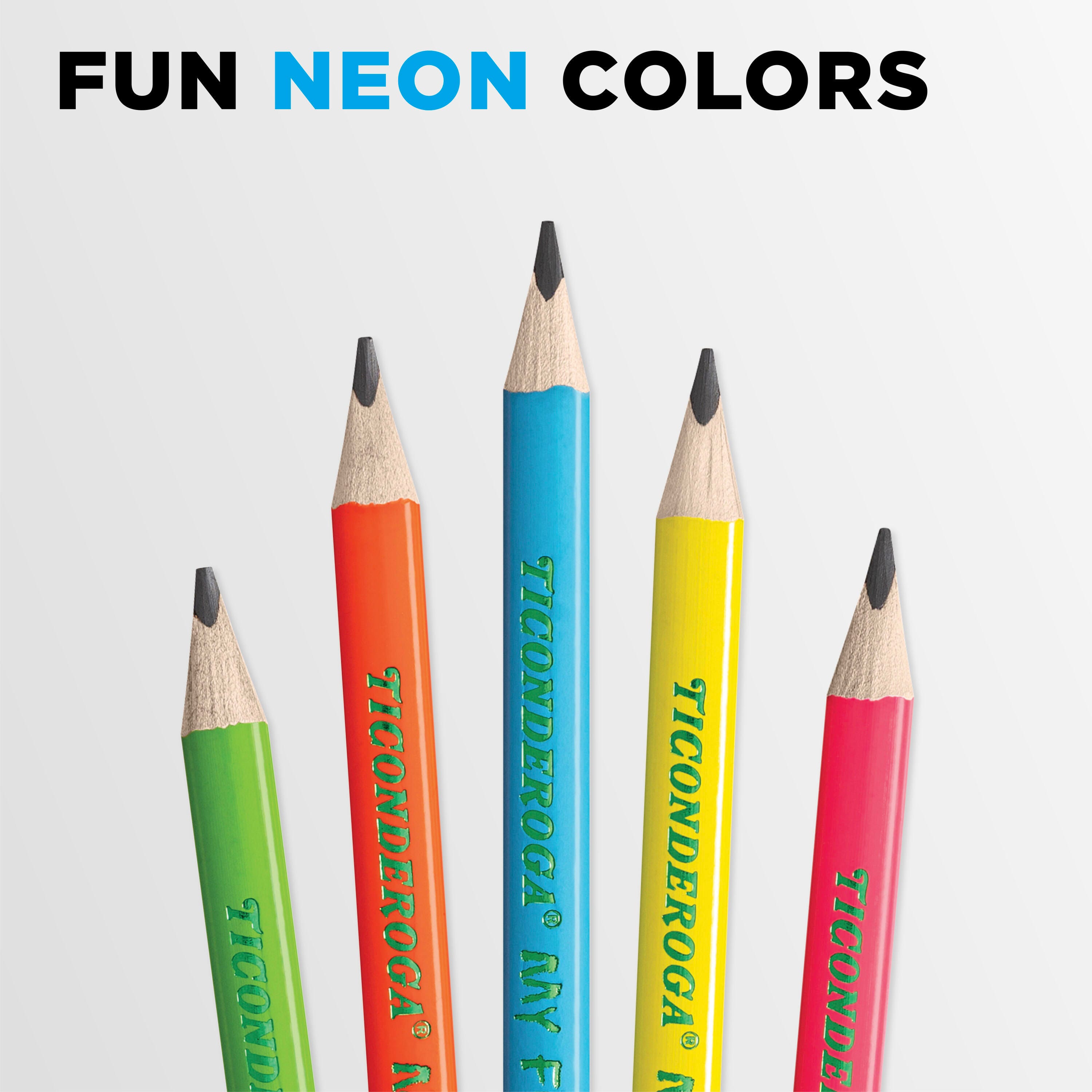 Ticonderoga My First Tri-Write Pencils, No 2 HB, Sharpened, Assorted Neon Colors, Pack of 12