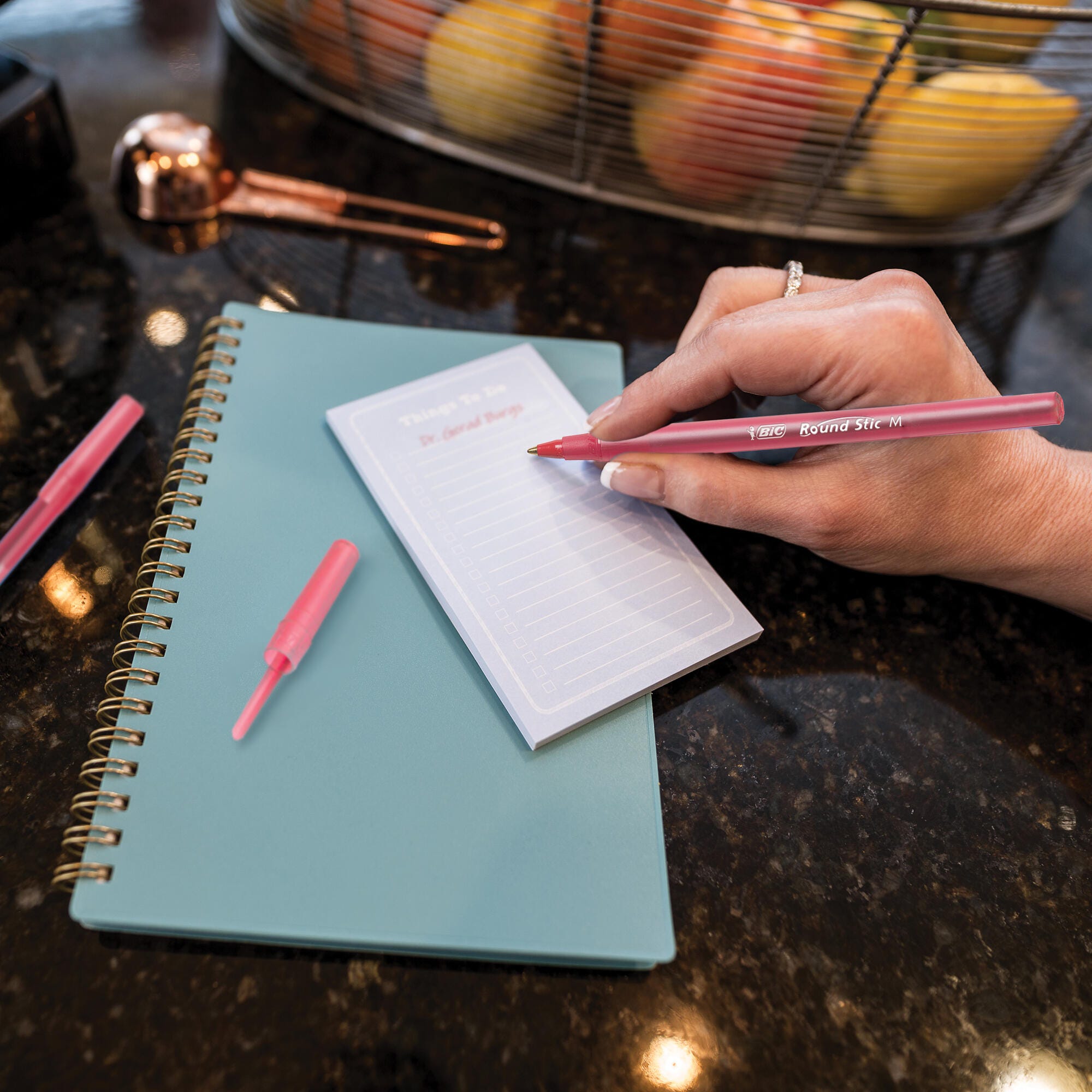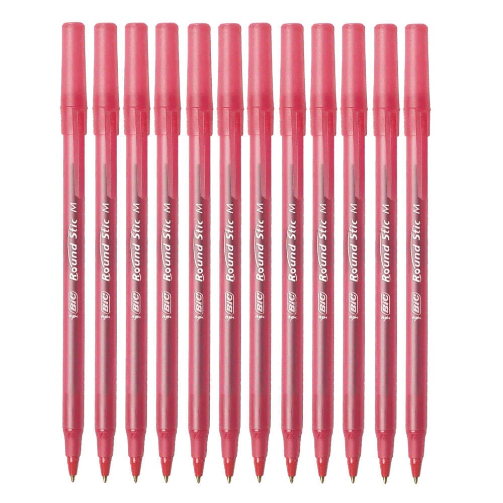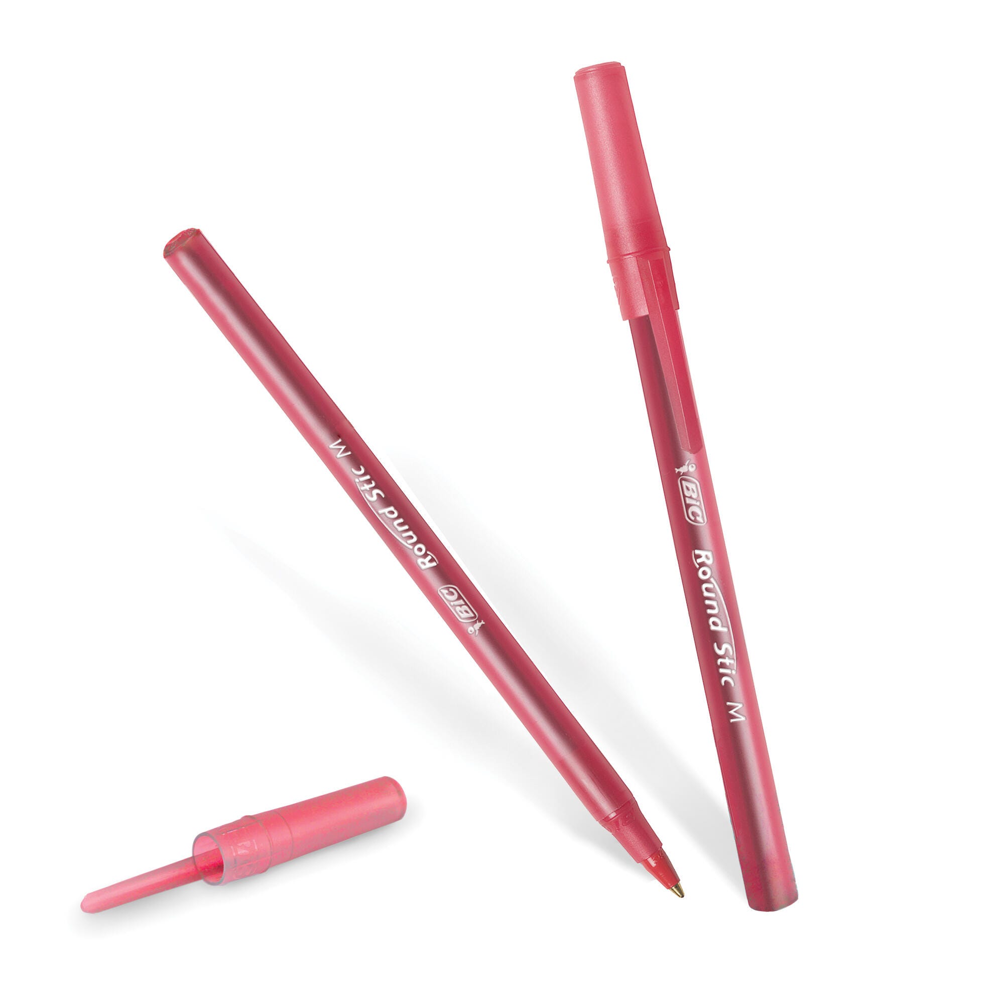 The BIC Round Stic Pens are lightweight pens with a round barrel designed for comfort during everyday writing tasks. The translucent frosted plastic barrels let you see the ink level, so you're never caught by surprise when running low. The super smooth ink flows continuously onto the page, and the vibrant red color creates eye-catching marks. These pens are an excellent choice for editing, grading, and color-coded notes. This pack contains 12 pens with red ink.