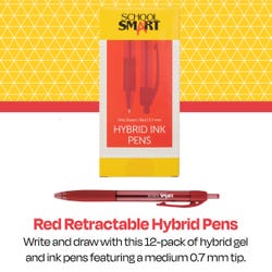 School Smart Retractable Hybrid Gel and Ink Pens, Red, Pack of 12