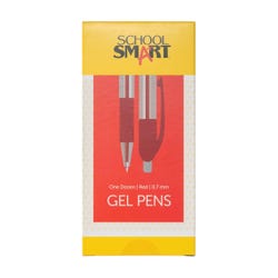 School Smart retractable gel pens provide effortless writing and added comfort with a tungsten carbide ball tip and smooth, supple rubber grip. The medium-sized nib is 0.7 mm for all-purpose writing. A spring-loaded ink cartridge retracts and extends outside its protective housing while the clear barrel allows you to see exactly how much ink is left. The value pack of 12 red pens lets you keep them in various locations or on hand for sharing in the office or classroom.Features