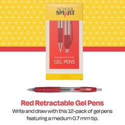 School Smart Retractable Gel Pens with Grip, Red Ink, Pack of 12