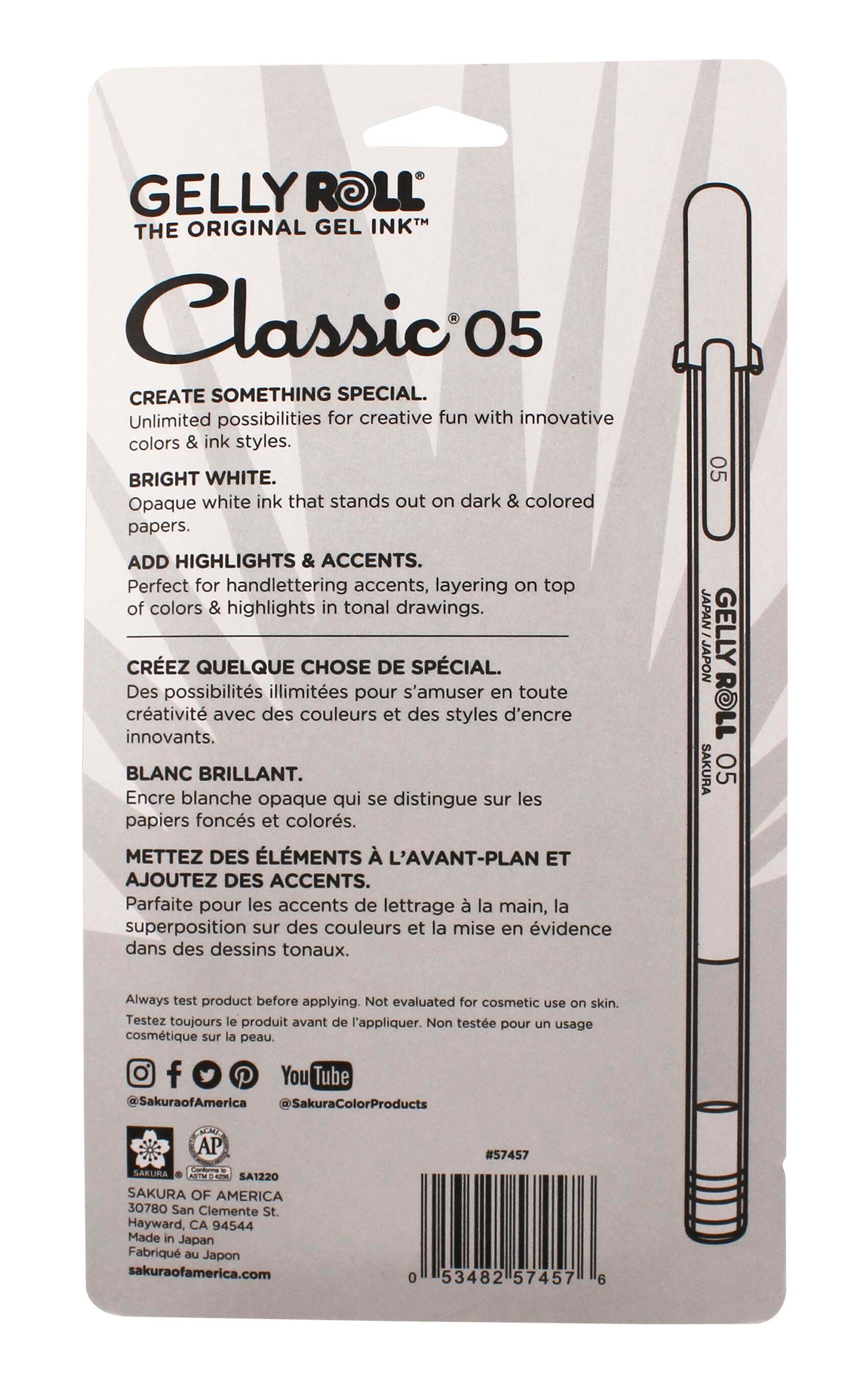 Sakura Gelly Roll Classic Gel Pens, 0.5 mm Fine Tip, White, Pack of 6