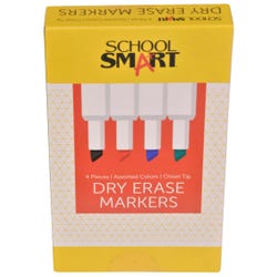 School Smart Dry Erase Markers, Chisel Tip, Low Odor, Assorted Colors, Pack of 4