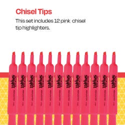 School Smart Tank Style Highlighters, Chisel Tip, Pink, Pack of 12