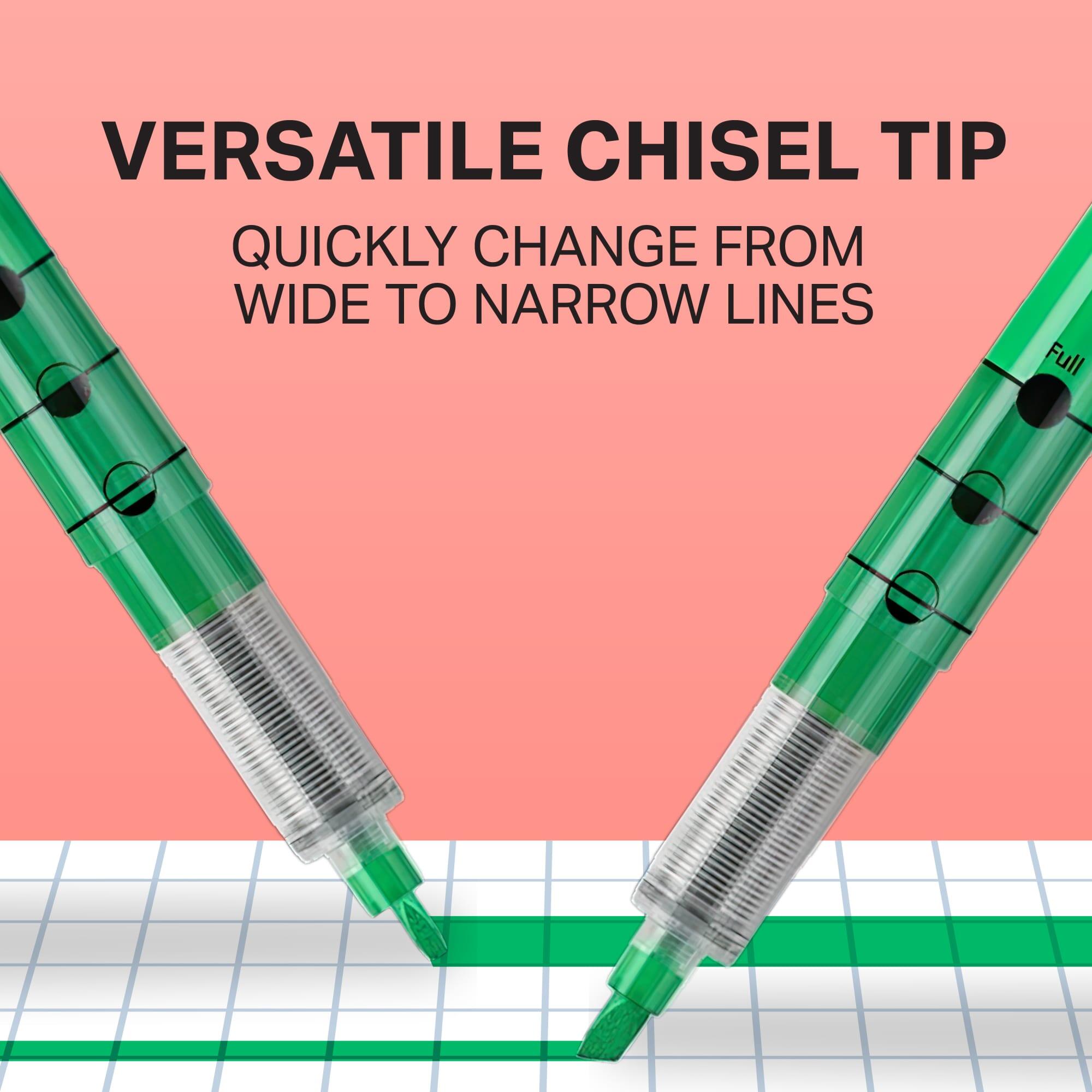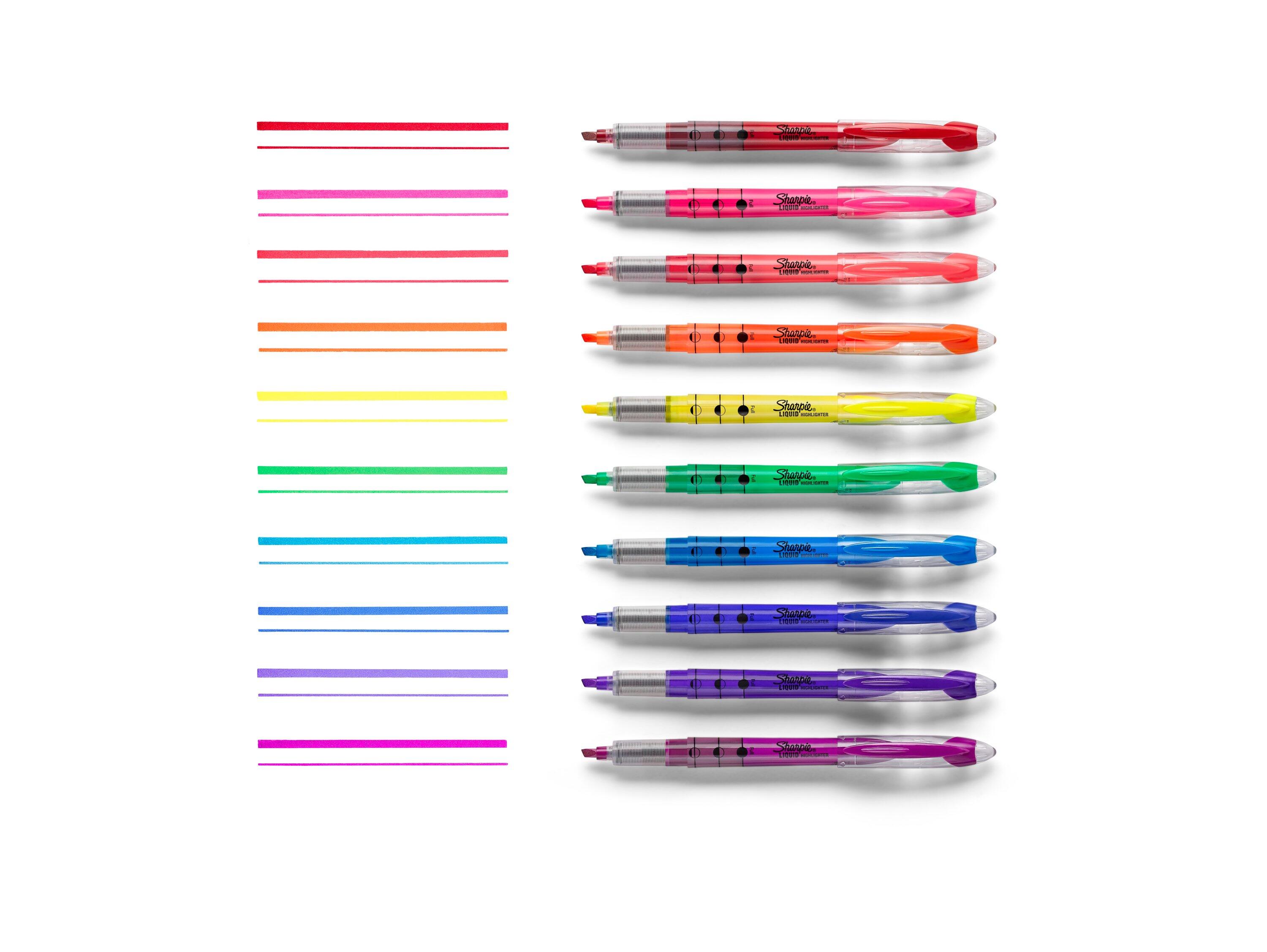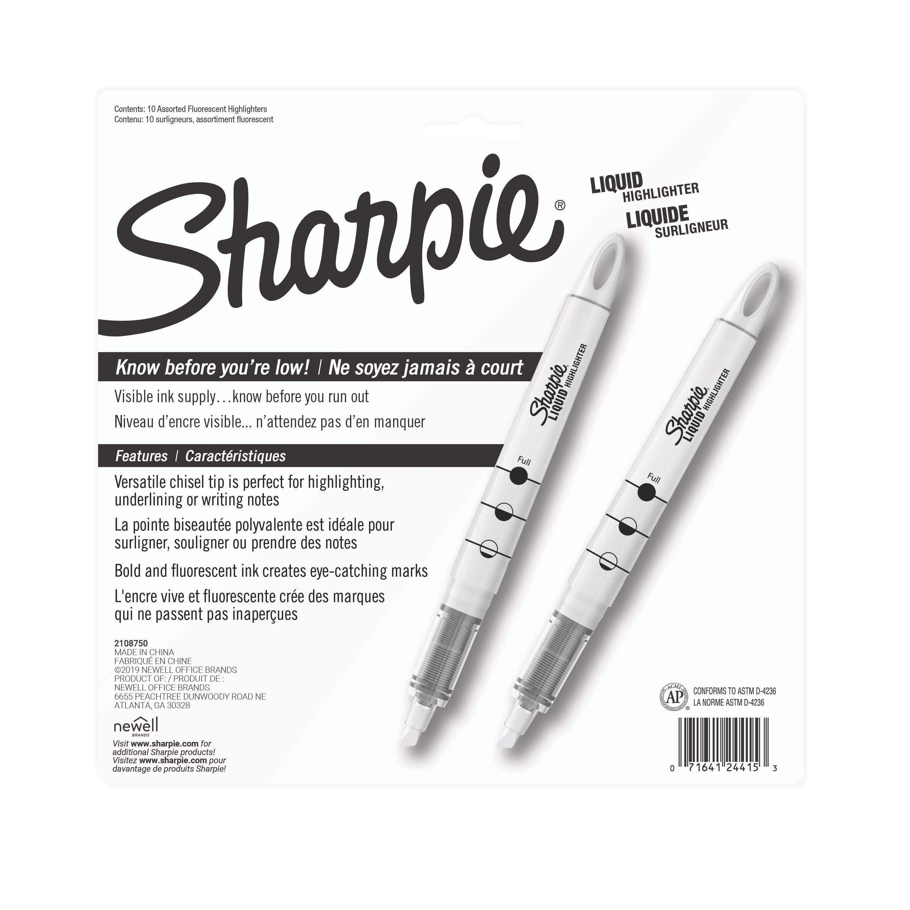 The Sharpie Accent Liquid Highlighter features pigmented fluorescent ink that is odorless, quick-drying, and more vibrant than traditional highlighters. Each highlighter features a visible ink supply and versatile chisel tip that is designed to produce broad and thin lines for highlighting or underlining. This set includes an assortment of eye-catching colors so important information pops right off the page.