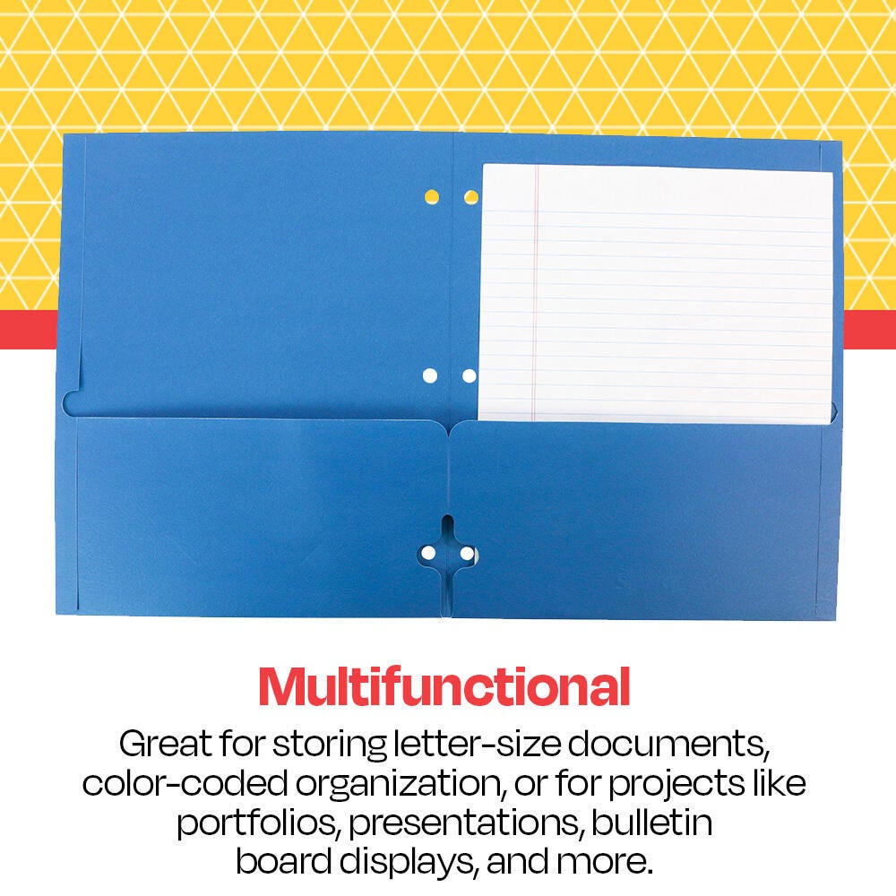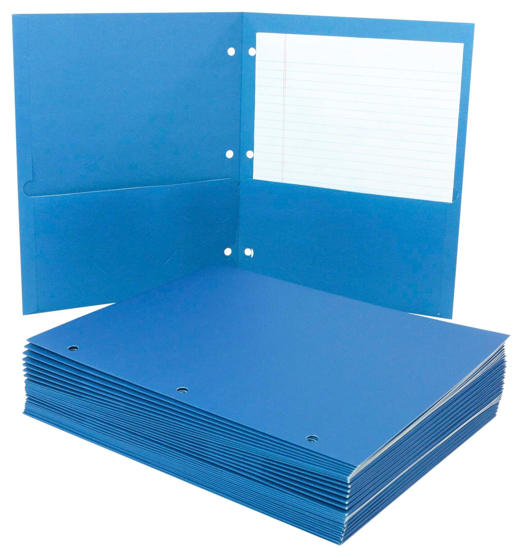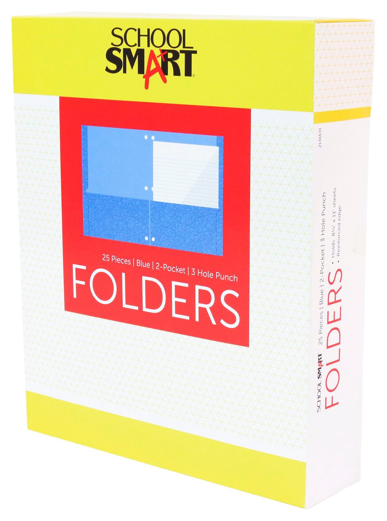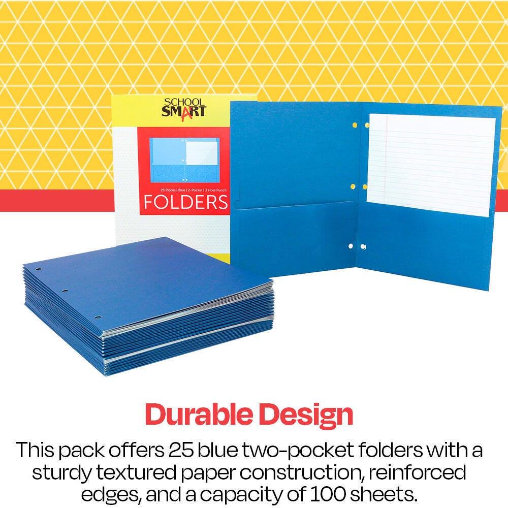 • School Smart 2-Pocket Folders, Letter Size, 3 Hole Punched, Blue, Pack of 25