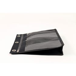 The School Smart Grey Binder Pouch provides a handy storage solution for your classroom and office essentials. The binder pouch features three 1/2 inch reinforced grommets and is designed to fit into 2 or 3-ring binders. It has a large zipper pocket and two smaller mesh zipper pockets that easily store pens, pencils, erasers, notes, and more. The 9 x 11 inch pouch expands 1-1/2 inches to fit a variety of supplies of different sizes.Features