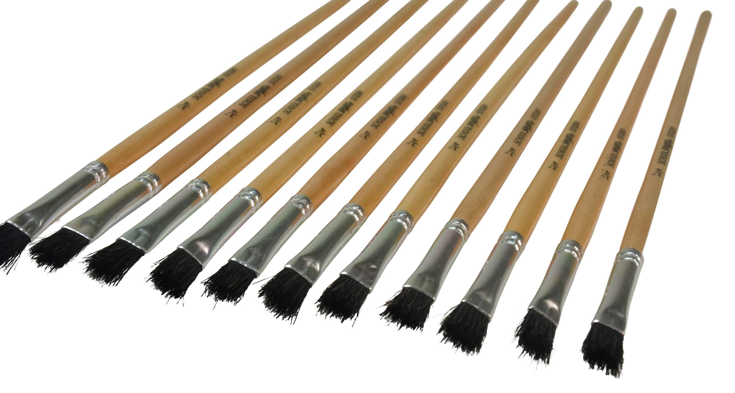 School Smart Black Bristle Paint Brushes, Long Handle, 1/4 Inch, Set of 12