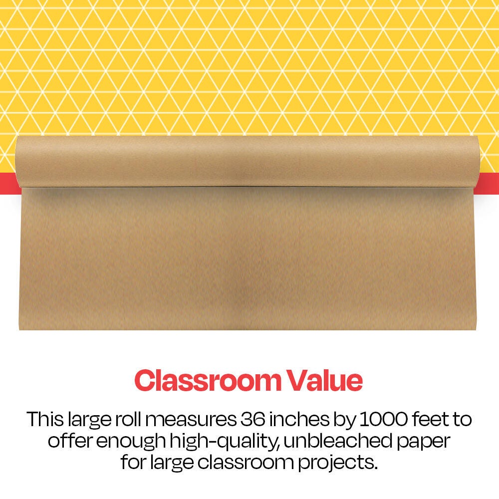 Excellent for murals, large paintings, decorating, and everything in between, School Smart's brown butcher kraft paper has the surface and sizing you need. The huge brown sheet roll has 1000 feet of paper, lending plenty of material for large classrooms and the ability for all students to draw, paint, color, and decorate at the same time. Kraft paper also works great as coverage for messy workspace units like table tops, art studios, garages, kennels, or when painting or wallpapering a room. The 2 inch core fits most paper racks.