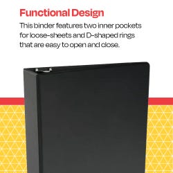School Smart D Ring Binder, Polypropylene, 3 Inches, Black