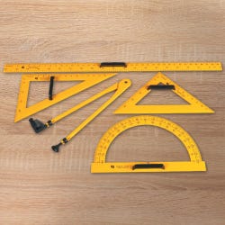 - High visibility yellow drafting supplies all have easy-to-see contrasting black markings for accurate markings and measurements