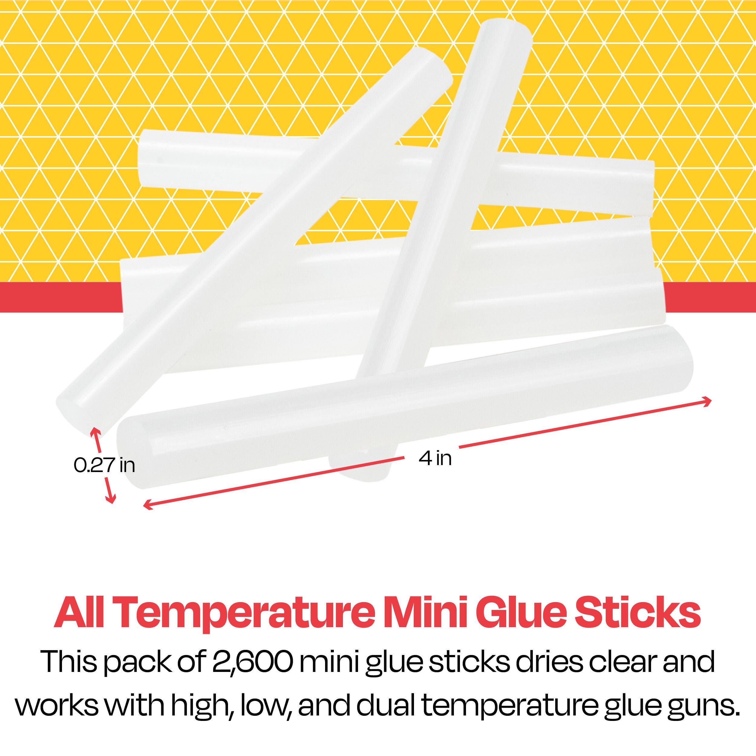 Our mini glue gun sticks measure 0.27 x 4 inches