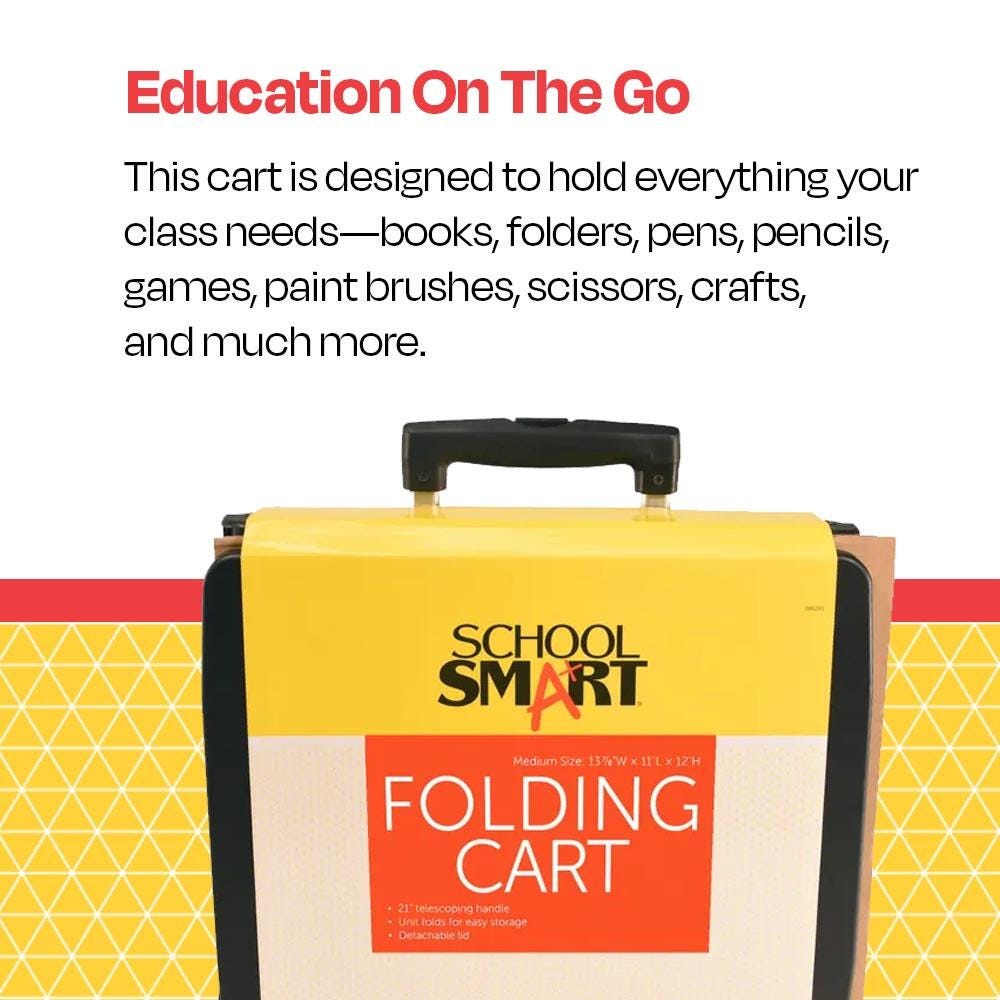 Pair this foldable utility cart for teachers with our fabric caddy organizer, item # 086293, to expand storage and organizational capabilities (item is sold separately)