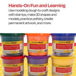 This Modeling Dough by School Smart is soft, pliable, and ready to be molded into masterpieces! Young artists can take art into their own hands with this non-staining, non-toxic, gluten-free model-making material that's perfect for the classroom. The dough is easily reusable if returned to its plastic tub, or it can be air-dried to a workable hardness. Conforms to ASTM D-4236. This set of 6 includes one 3-1/3 pound tub for each of the following colors: red, orange, yellow, green, blue, and purple.Features